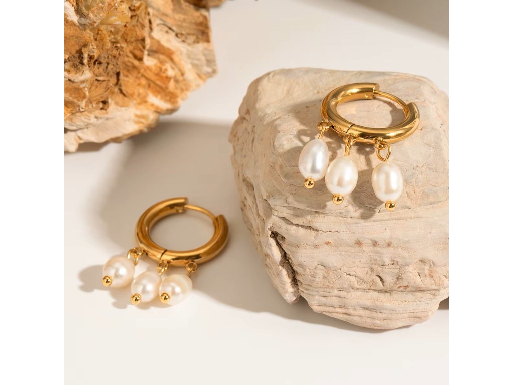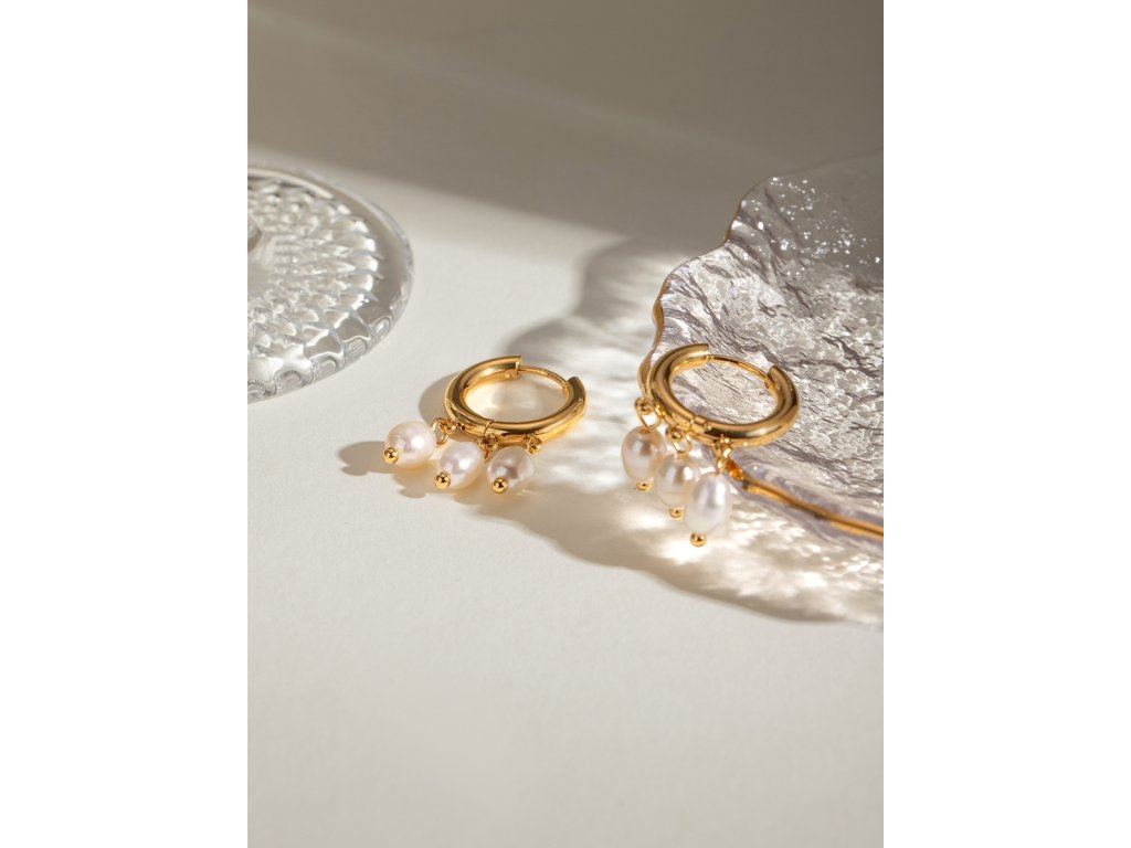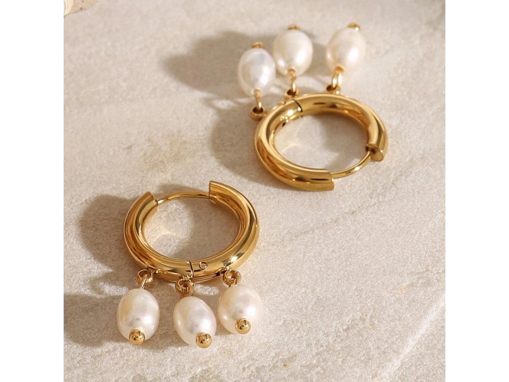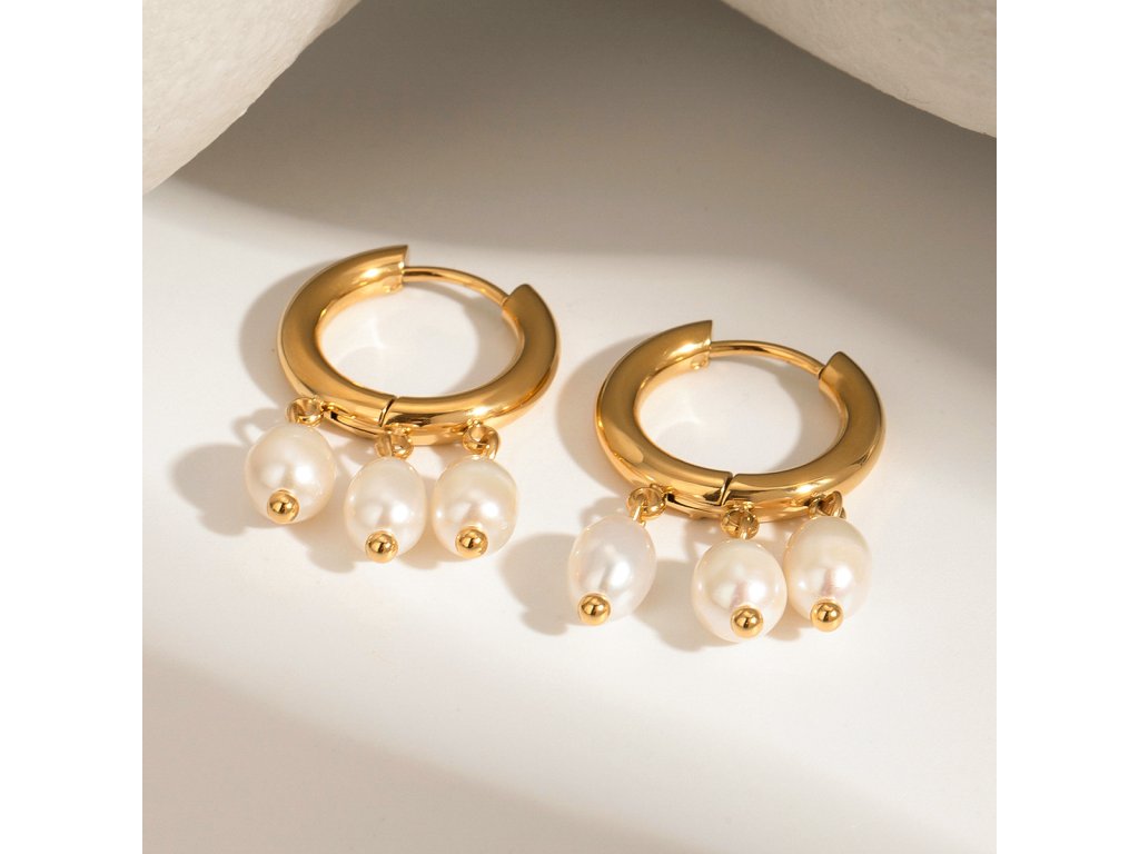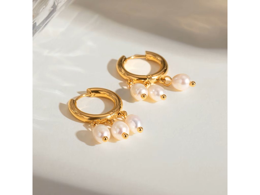 Tři jemné perly na zlatých kroužcích – drobný detail, který rozzáří každý look.
