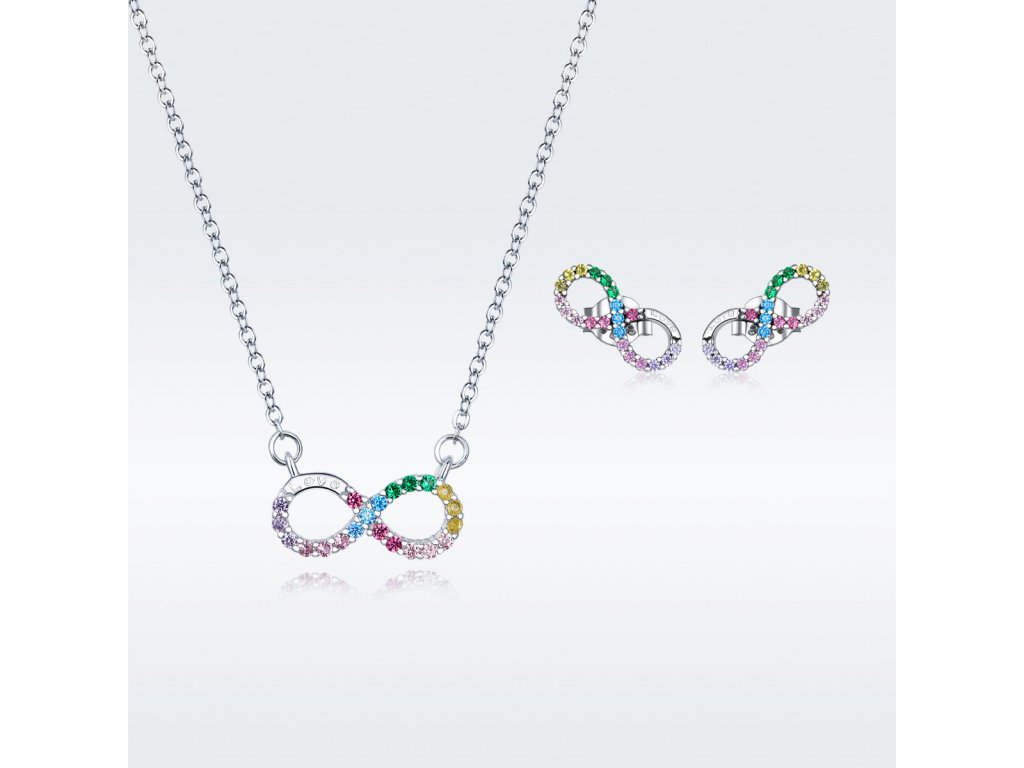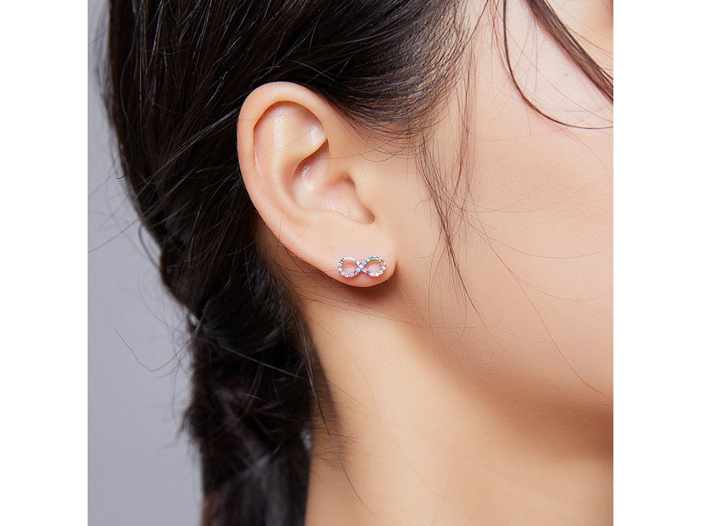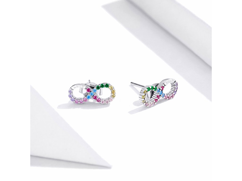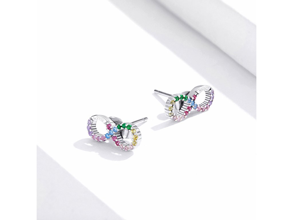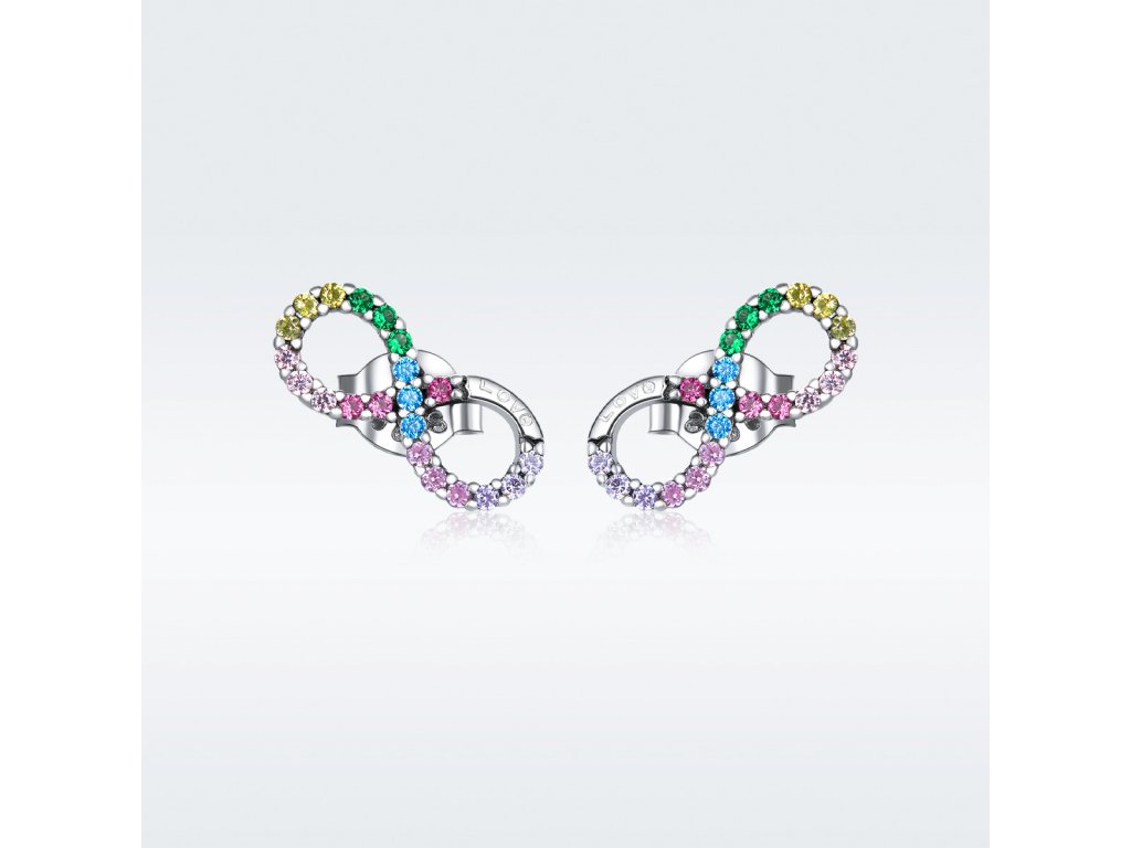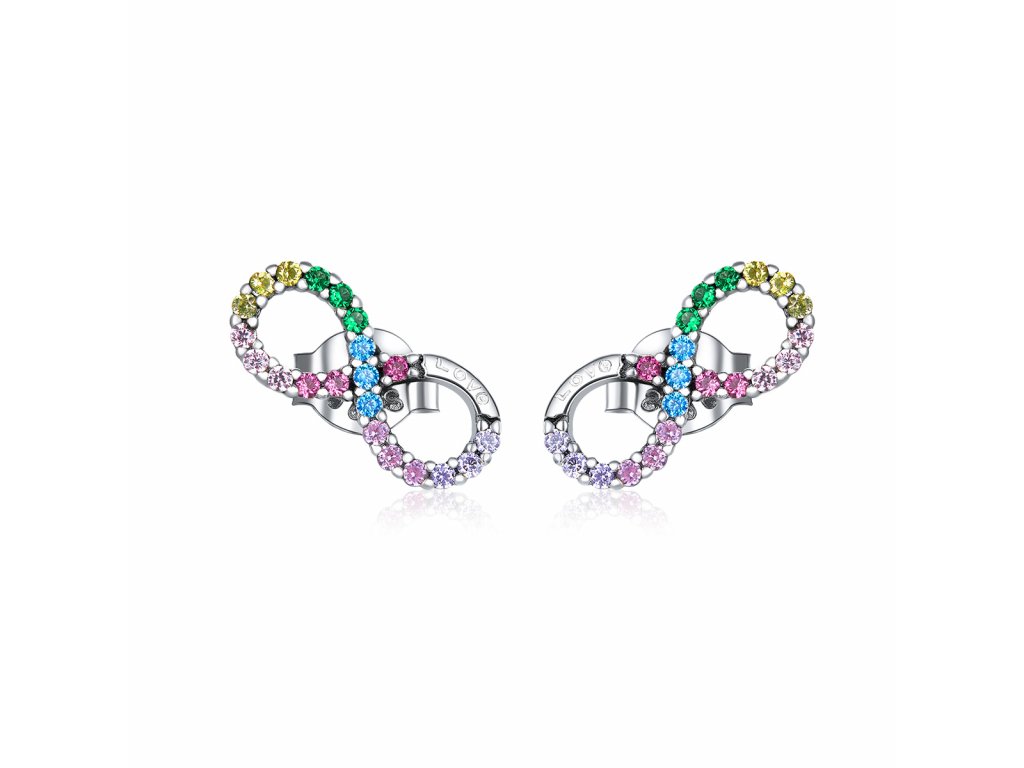 - Stříbrné náušnice v designu Duhového symbolu nekonečna zdobeného barevnými kameny v podobě třpytivých zirkonů a vyrytého anglického nápisu "love" v překladu "láska". Originální design náušnic, kvalitní zpracování a materiál, ručně dohotovené.