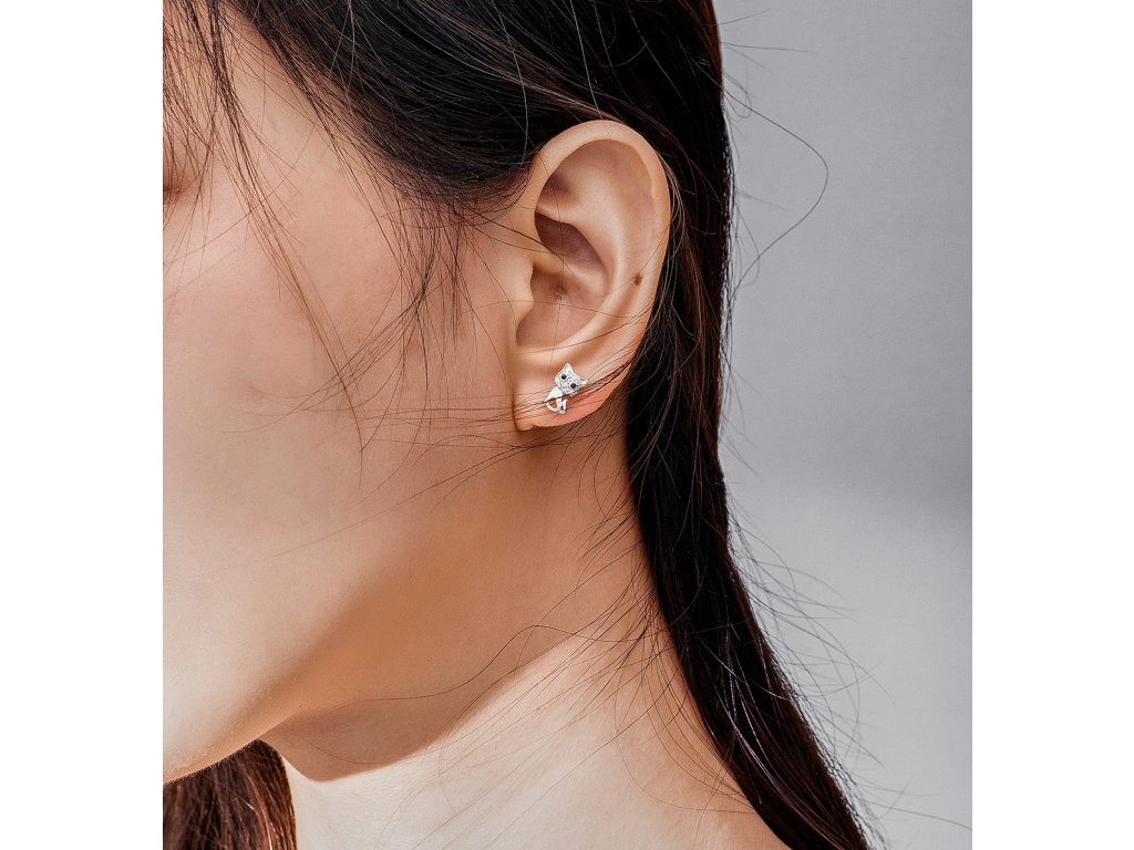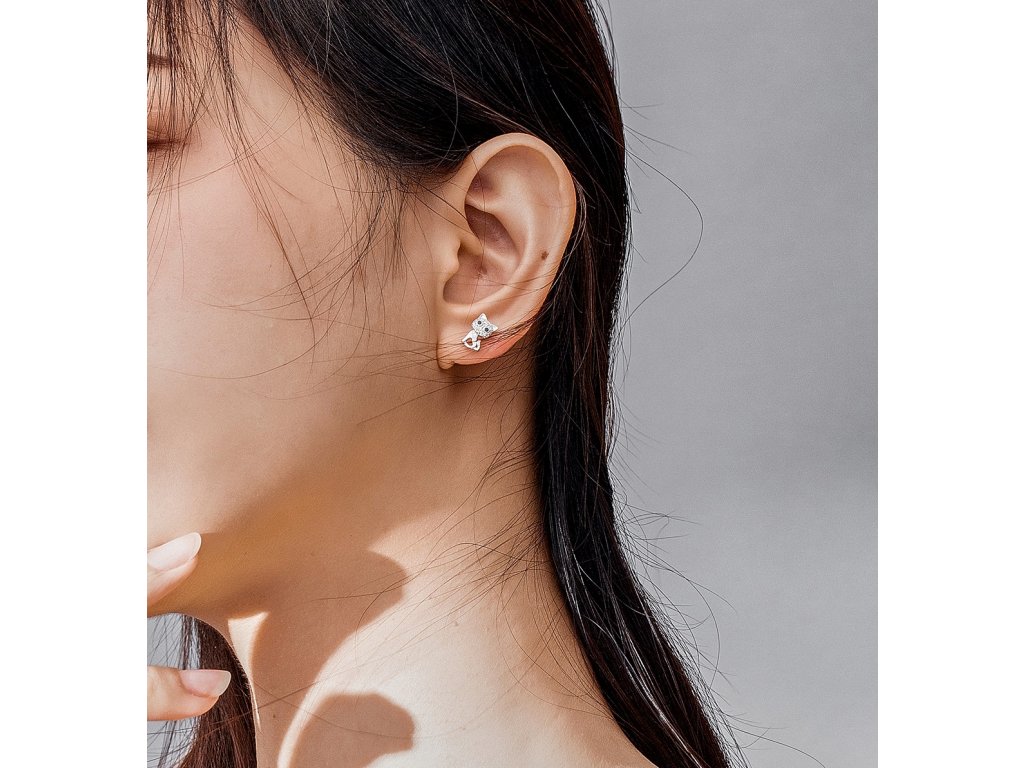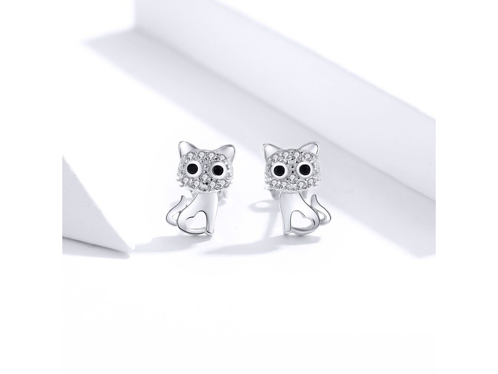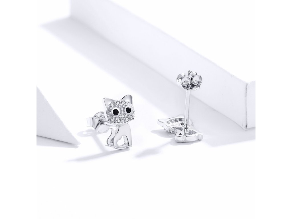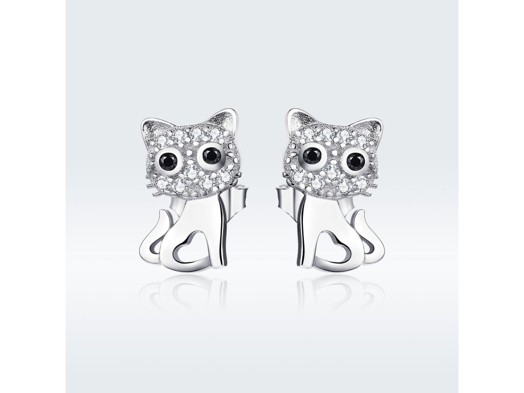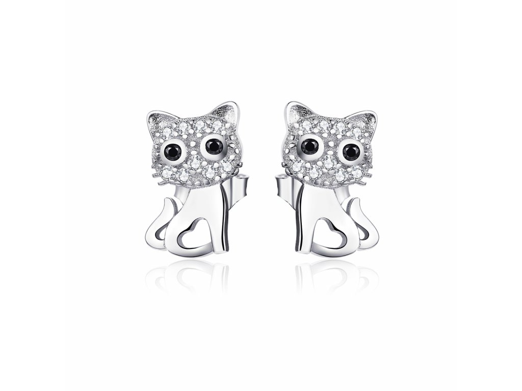 - Stříbrné peckové náušnice v designu Milované kočky zdobené vyřezávanými srdíčky a třpytivými kameny v podobě černých a čirých zirkonů. Originální design náušnic, kvalitní zpracování a materiál, ručně dohotovené.