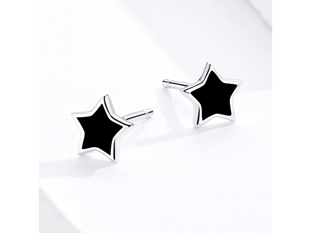 - Stříbrné peckové náušnice v designu Minimalistických hvězdiček zdobených ručně nanášenou černou glazurou. Originální design náušnic, kvalitní zpracování a materiál, ručně dohotovené.