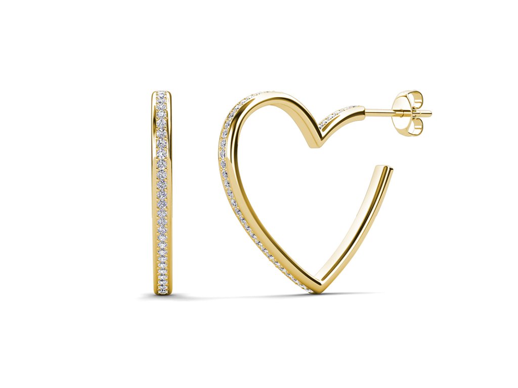 - Kruhové náušnice ve tvaru srdce pozlacené 18 karátovým žlutým zlatem zdobené krystaly Swarovski®. Originální design náušnic, kvalitní zpracování a materiál, ručně dohotovené.