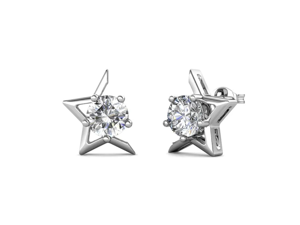 Elenys pozlacené náušnice Hvězda s drahokamem moissanitem 18K bílé zlato