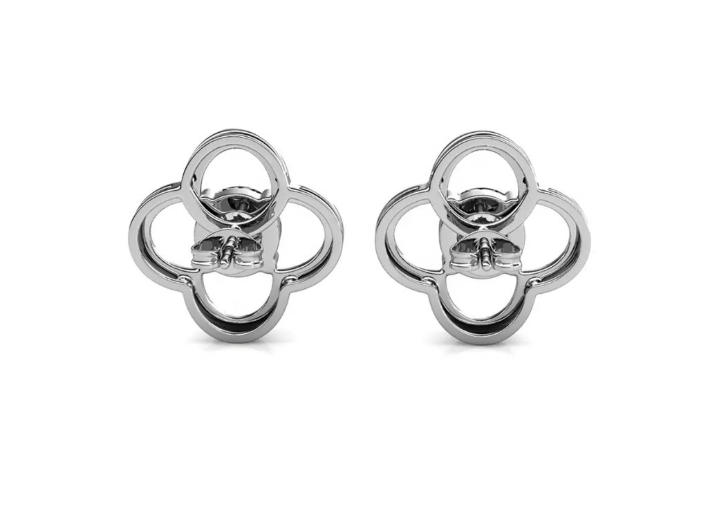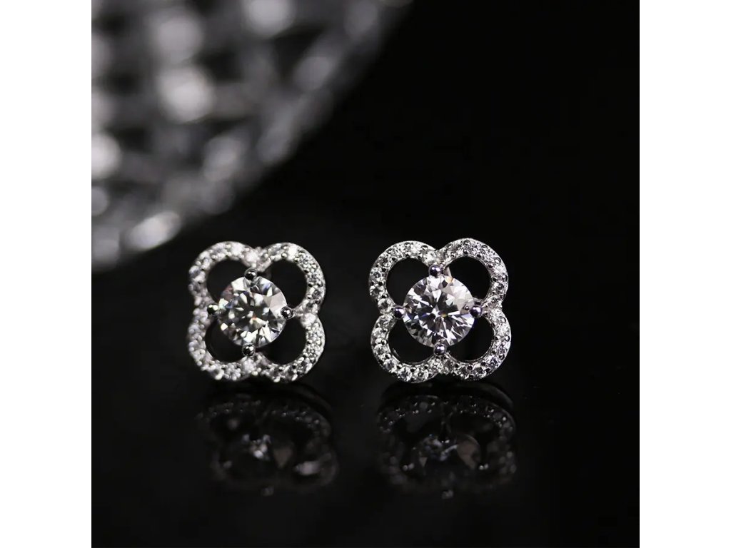 - Stříbrné peckové náušnice pozlacené 18 karátovým bílým zlatem zdobené drahokamem moissanitem a zirkony. Originální design náušnic, kvalitní zpracování a materiál, ručně dohotovené.