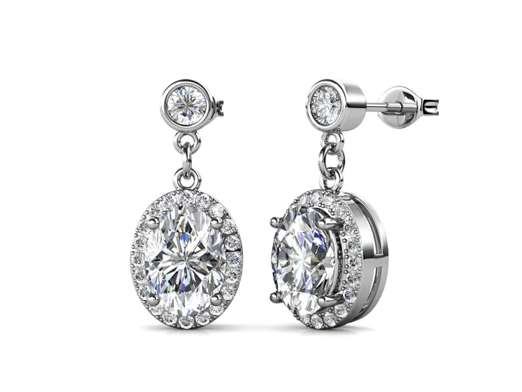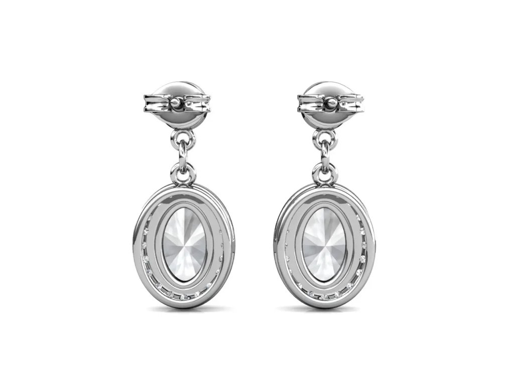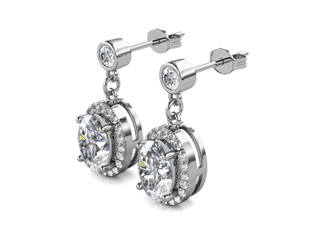 - Stříbrné visací náušnice pozlacené 18 karátovým bílým zlatem zdobené drahokamem moissanitem a zirkony. Originální design náušnic, kvalitní zpracování a materiál, ručně dohotovené.