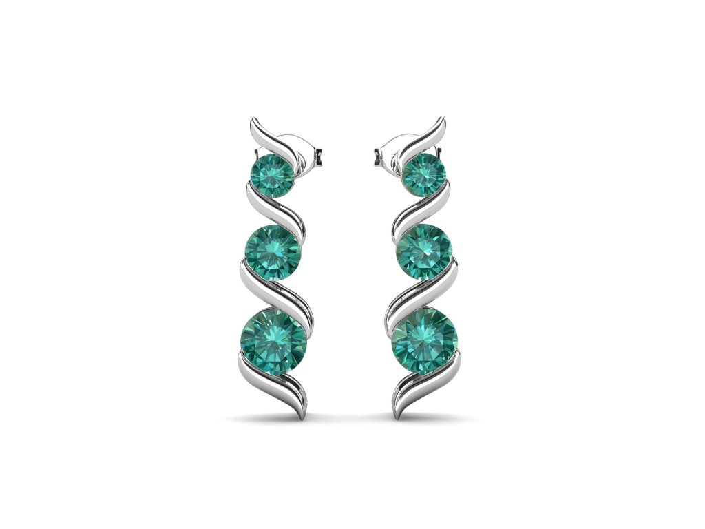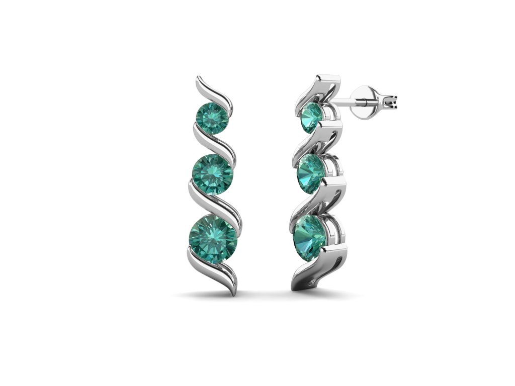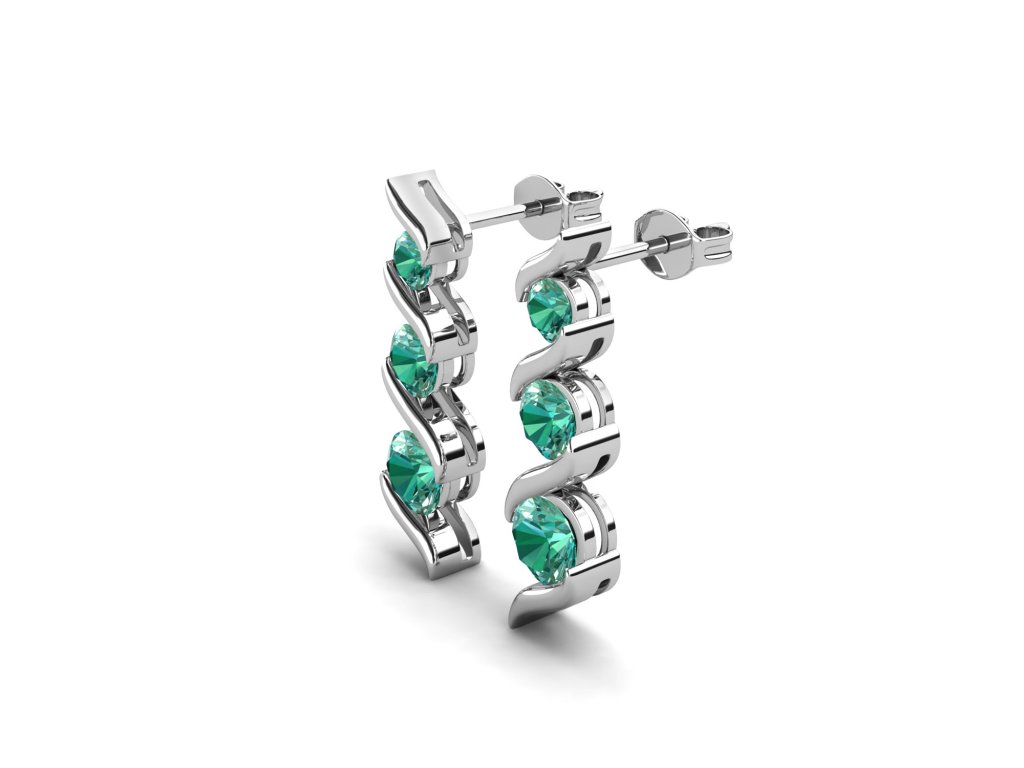 - Stříbrné visací náušnice pozlacené 18 karátovým bílým zlatem zdobené drahokamem zeleným moissanitem. Originální design náušnic, kvalitní zpracování a materiál, ručně dohotovené.