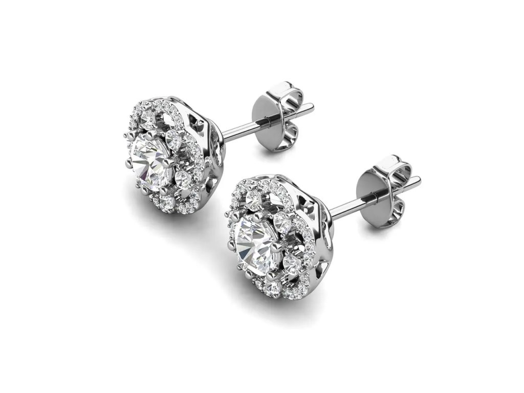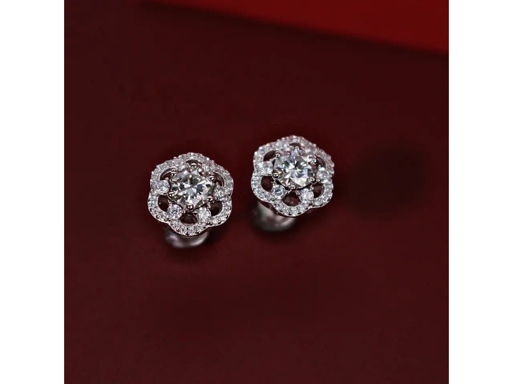 - Stříbrné peckové náušnice pozlacené 18 karátovým bílým zlatem zdobené drahokamem moissanitem a a zirkony. Originální design náušnic, kvalitní zpracování a materiál, ručně dohotovené.