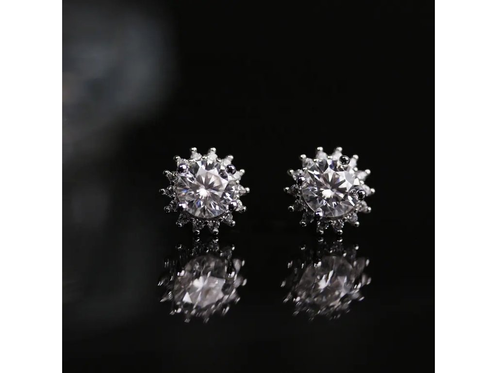 - Stříbrné peckové náušnice pozlacené 18 karátovým bílým zlatem zdobené drahokamem moissanitem a zirkony. Originální design náušnic, kvalitní zpracování a materiál, ručně dohotovené.