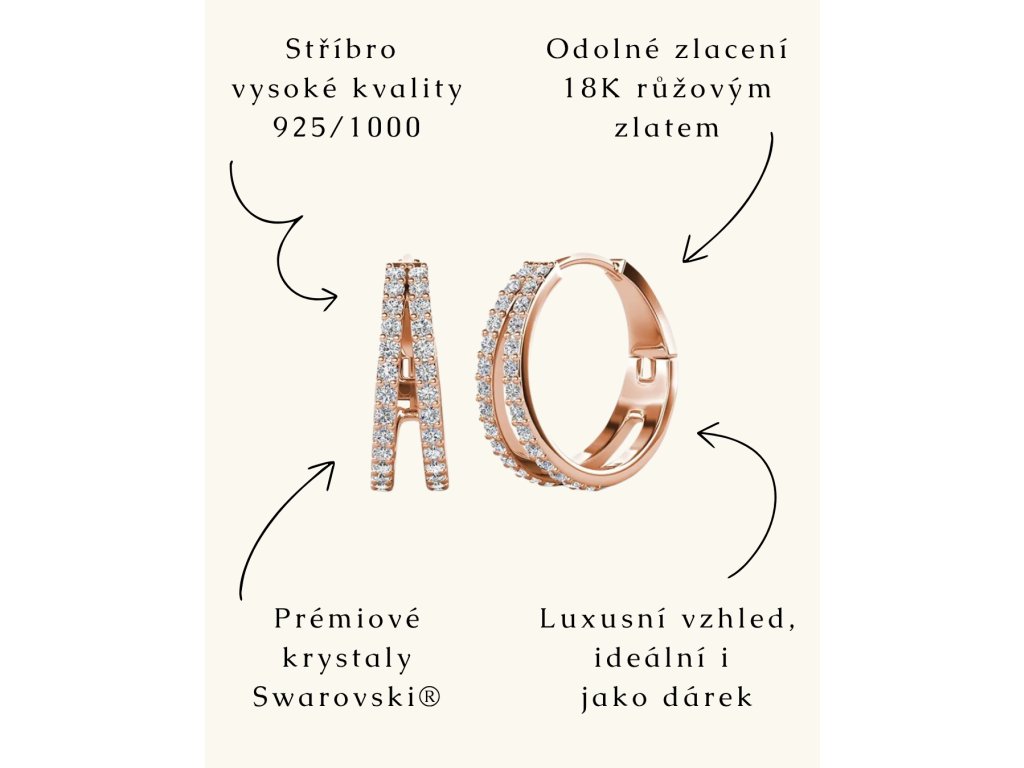 Elenys pozlacené náušnice s krystaly Swarovski® 18K růžové zlato