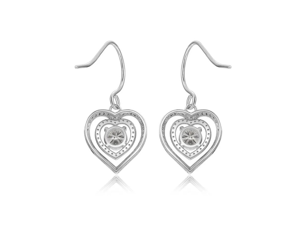 - Stříbrné visací náušnice Srdce pozlacené 18 karátovým bílým zlatem zdobené drahokamem moissanitem a zirkony. Originální design náušnic, kvalitní zpracování a materiál, ručně dohotovené.