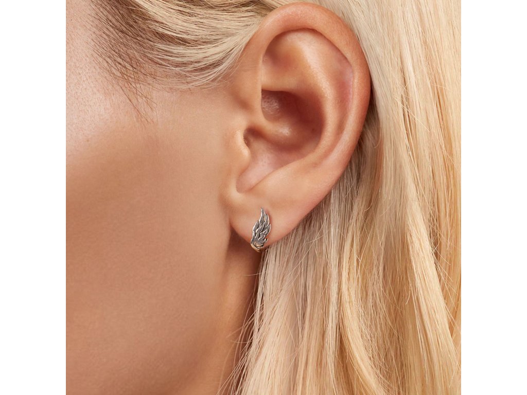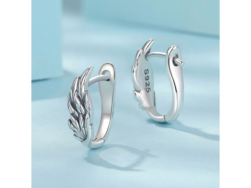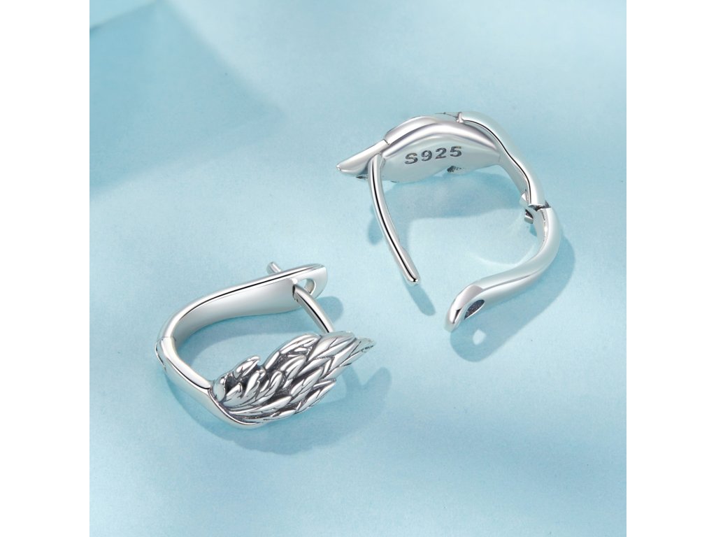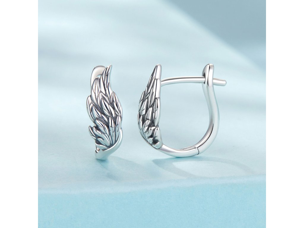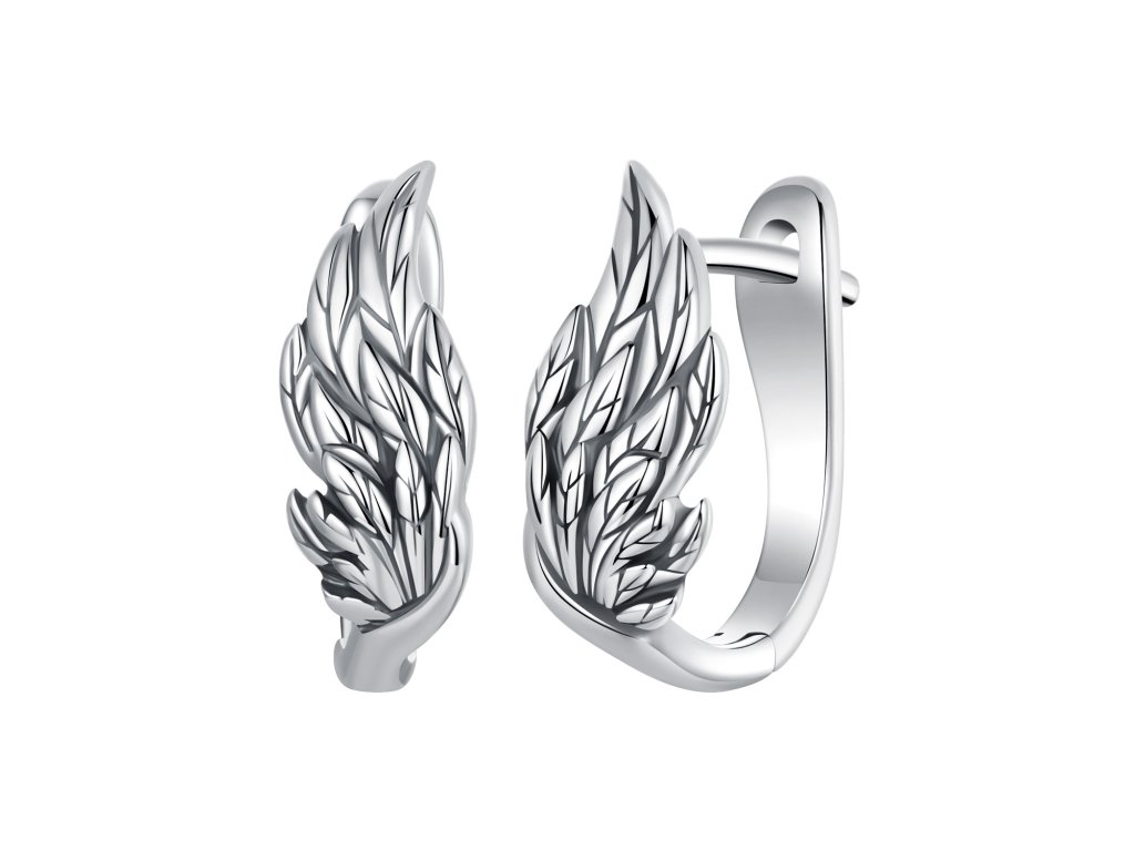 - Stříbrné kruhové náušnice v designu andělských křídel s precizním zpracováním. Vyrobené z kvalitního sterlingového stříbra, doplněné o ručně dokončované detaily, které zajišťují jedinečnost každého kusu.