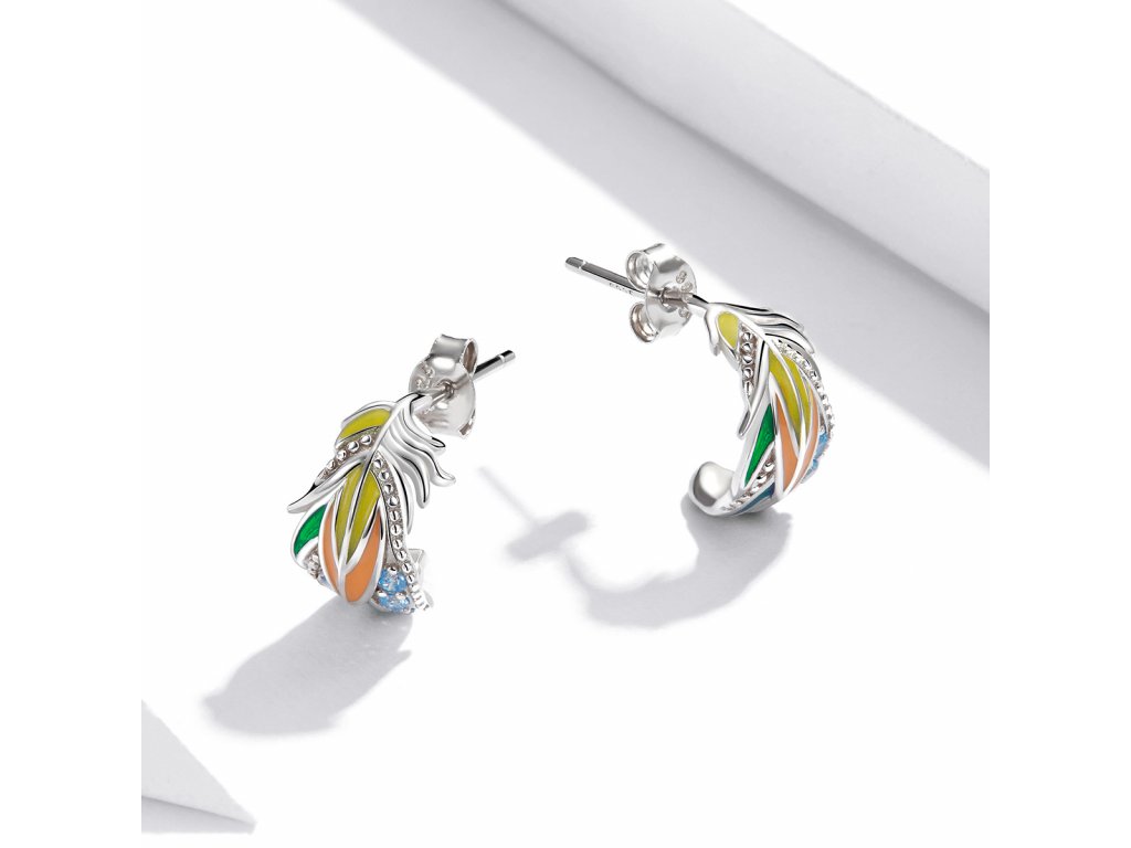 Elenys stříbrné kruhové náušnice Barevná pírka