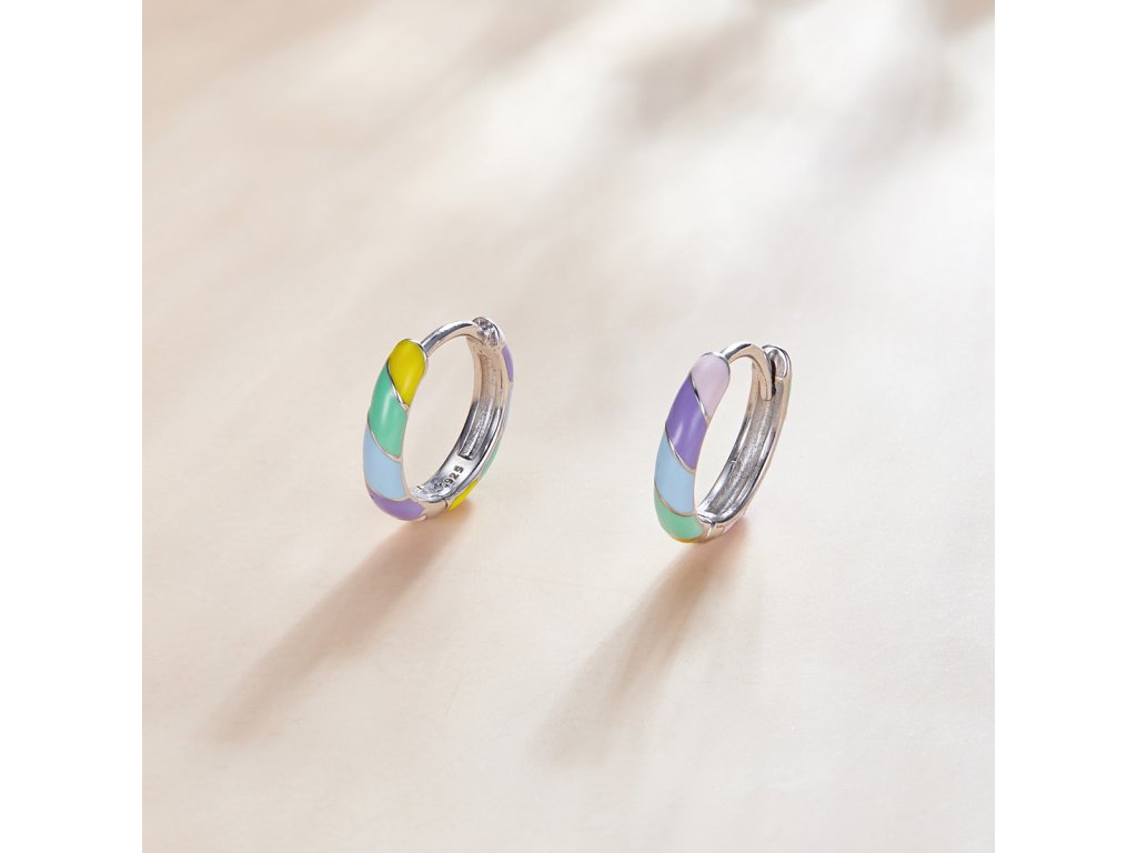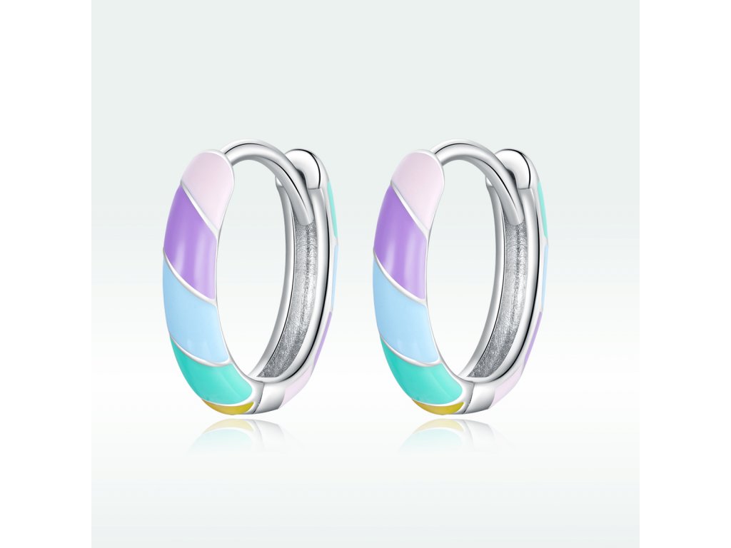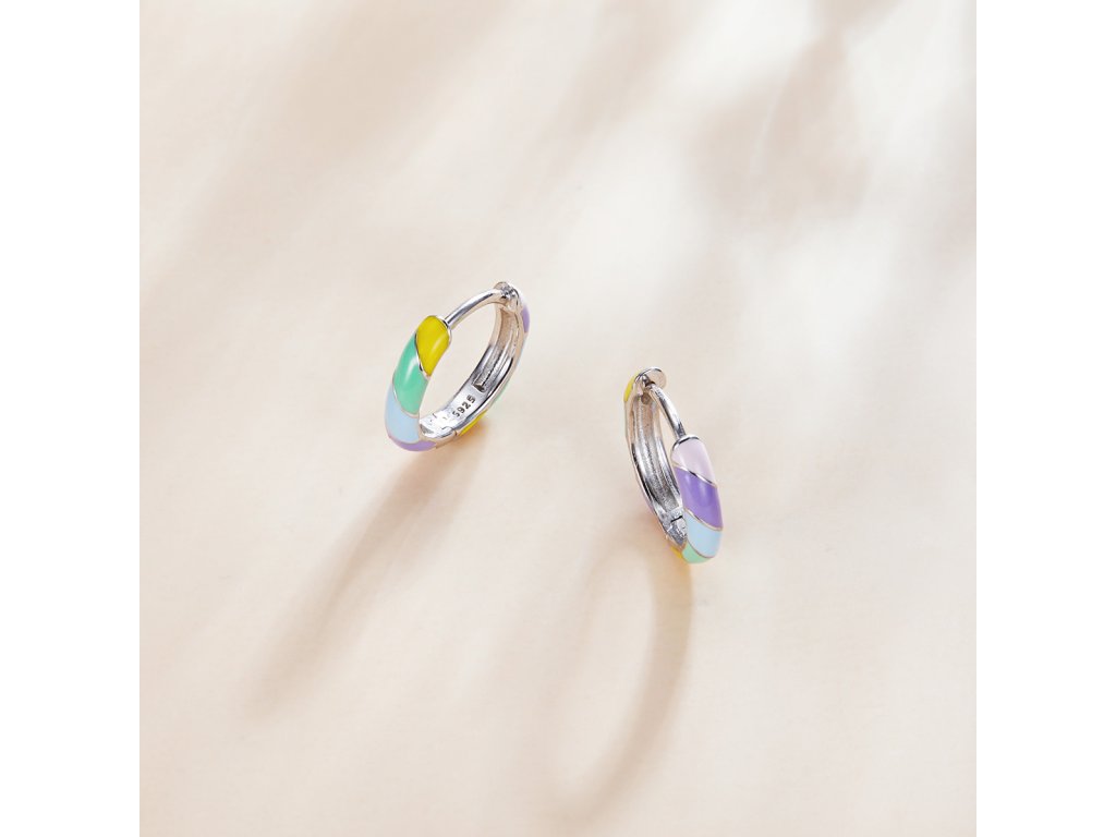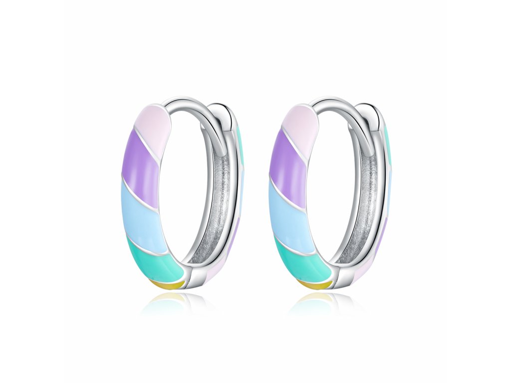 - Stříbrné náušnice kroužky zdobené ručně nanášenou barevnou glazurou. Originální design náušnic, kvalitní zpracování a materiál, ručně dohotovené.