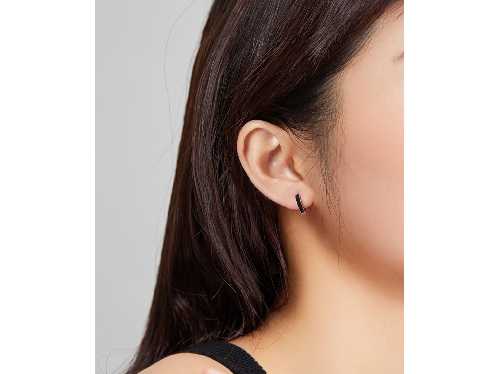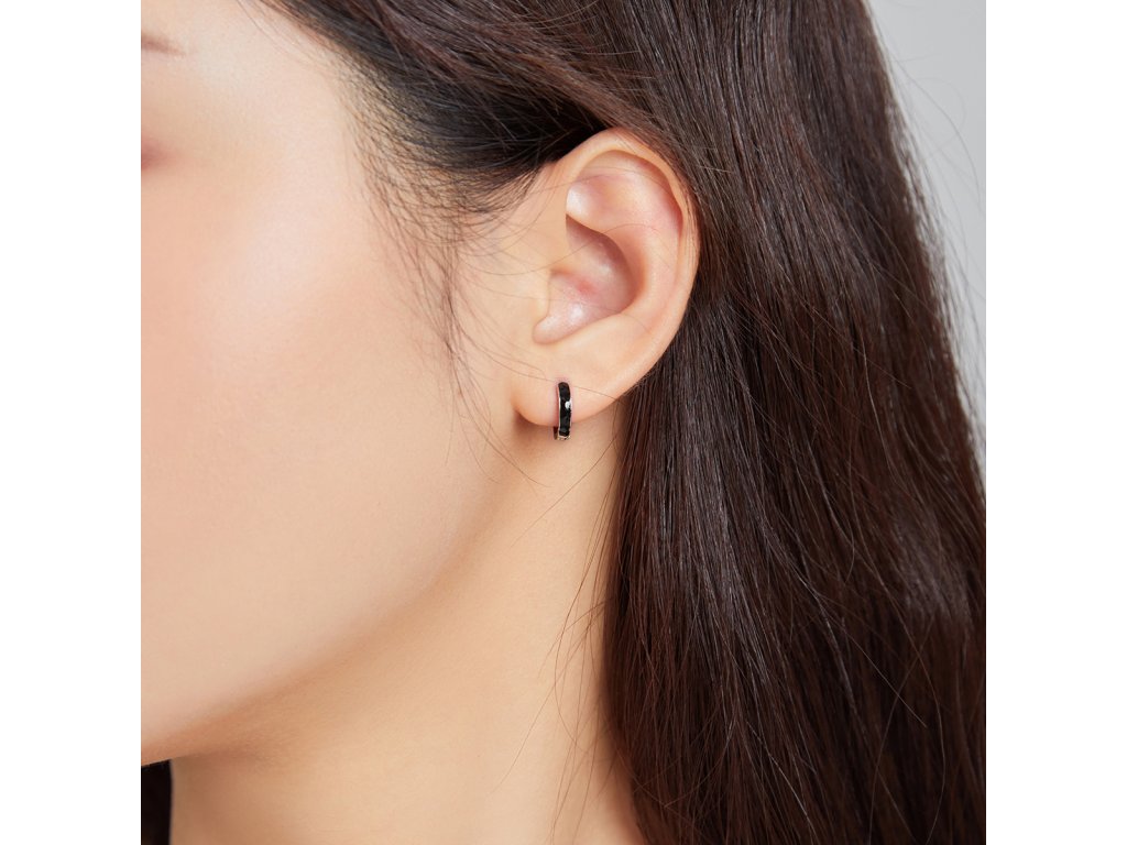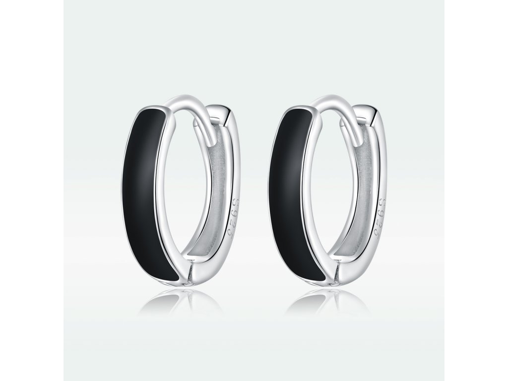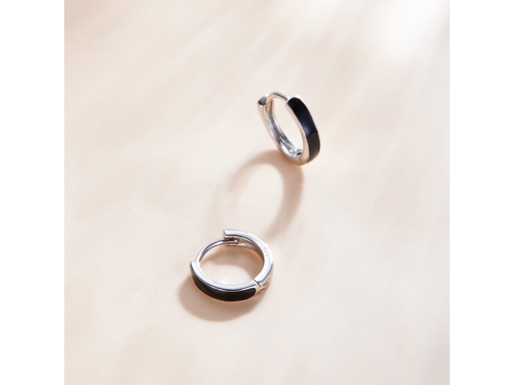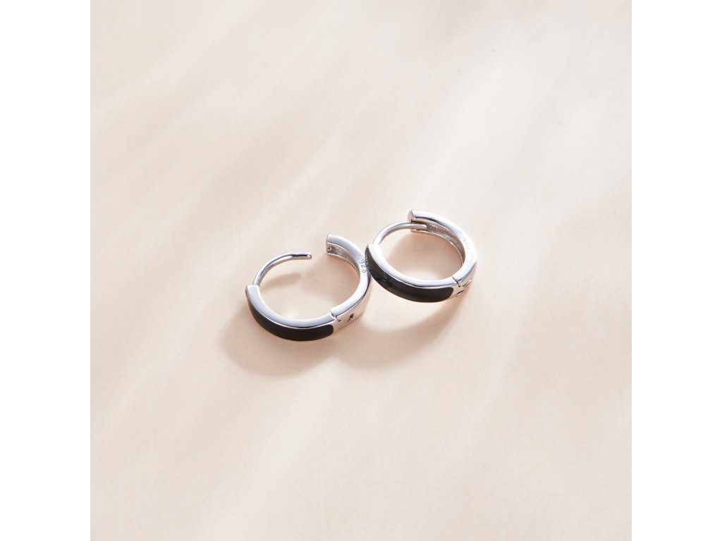 Elenys stříbrné náušnice Glazurované černé kroužky
