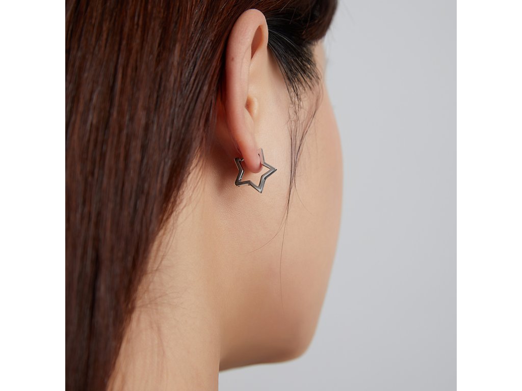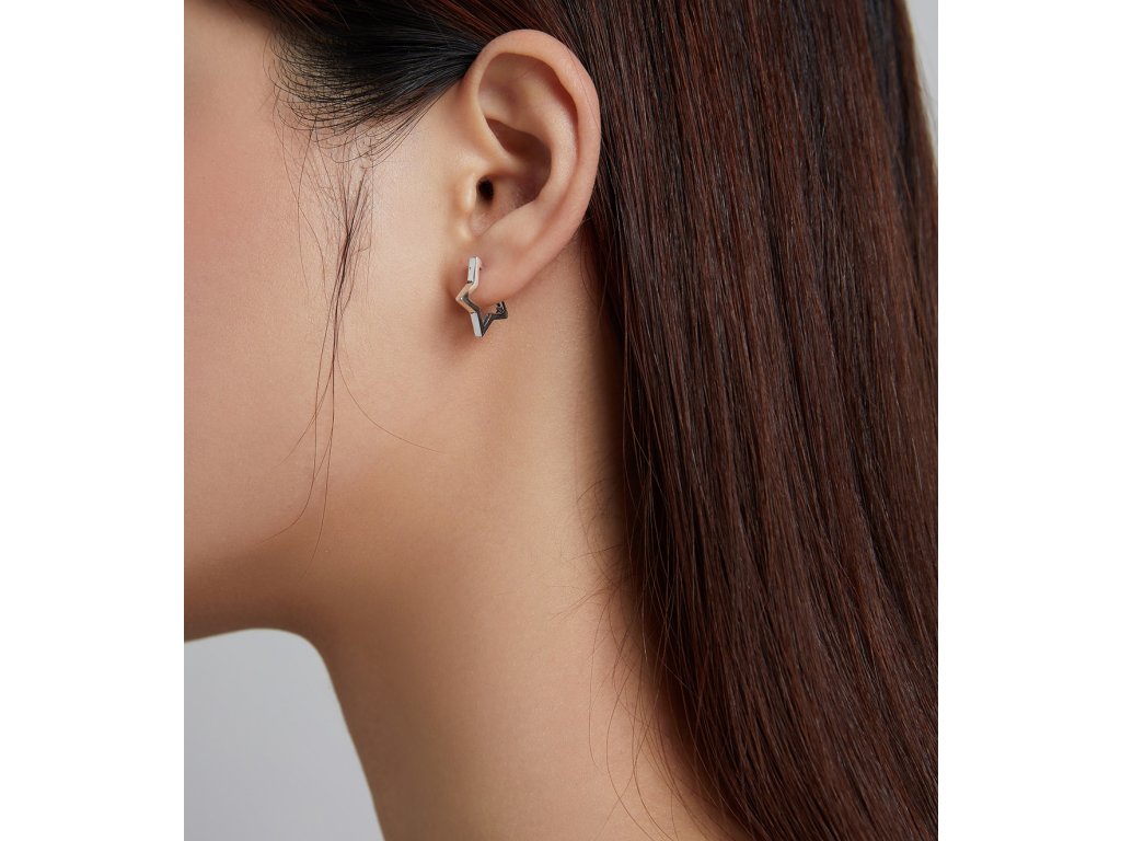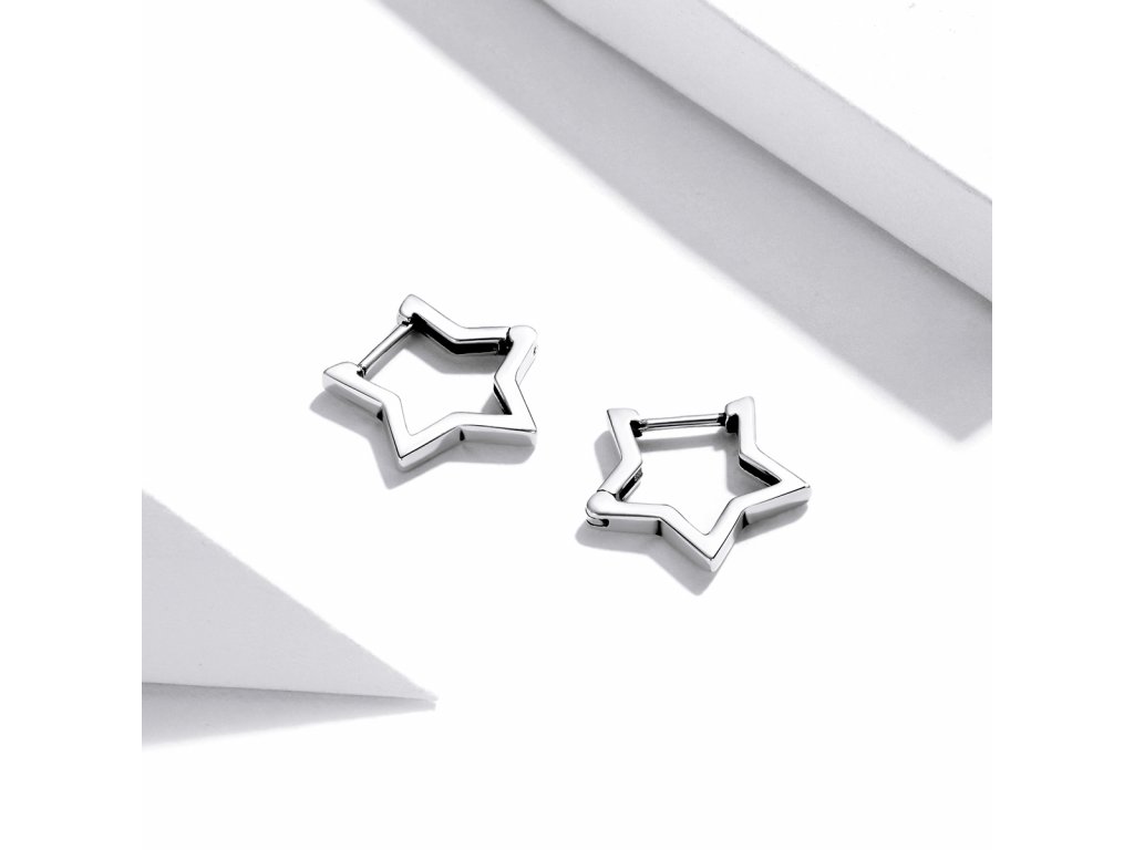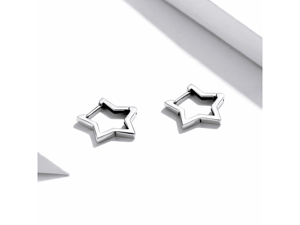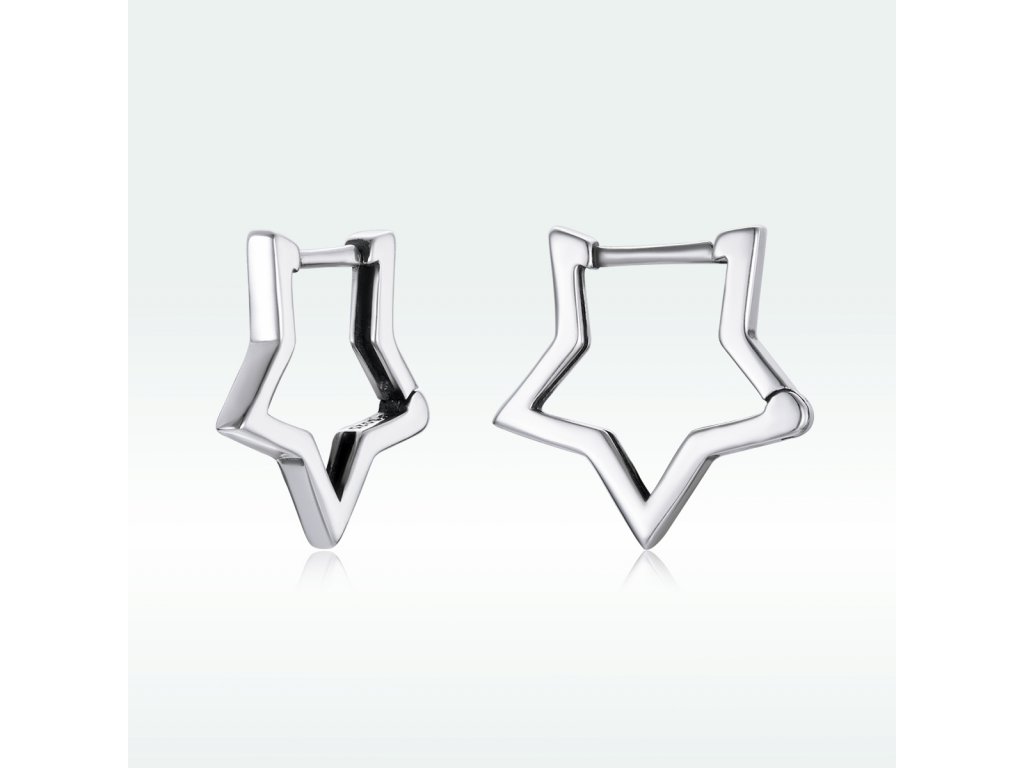 - Stříbrné náušnice kroužky v designu hvězdy. Kvalitní stříbro zaručí dokonalý lesk šperku a vy zazáříte za každých okolností. Originální design náušnic, kvalitní zpracování a materiál, ručně dohotovené.