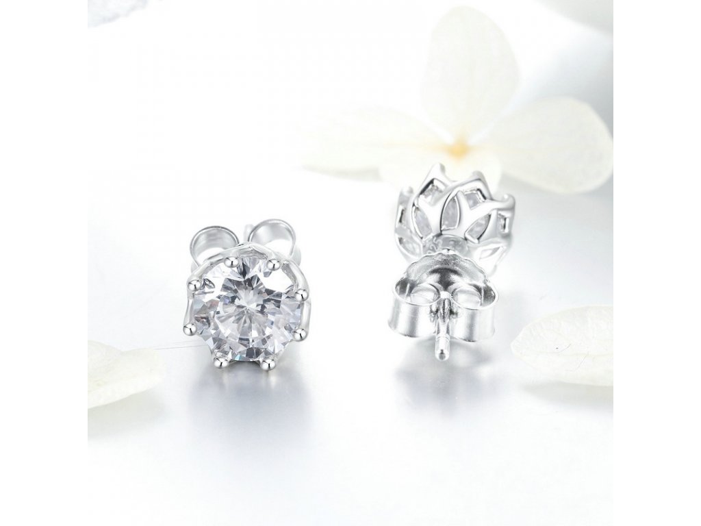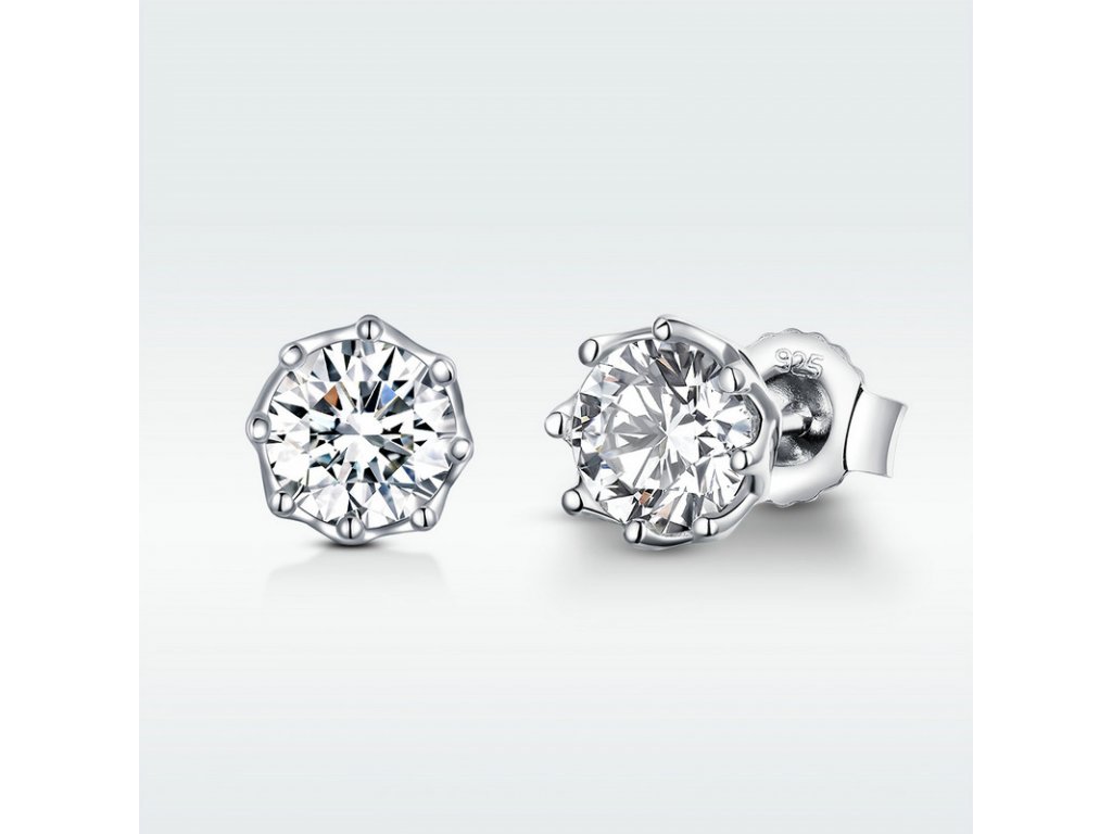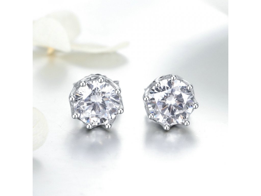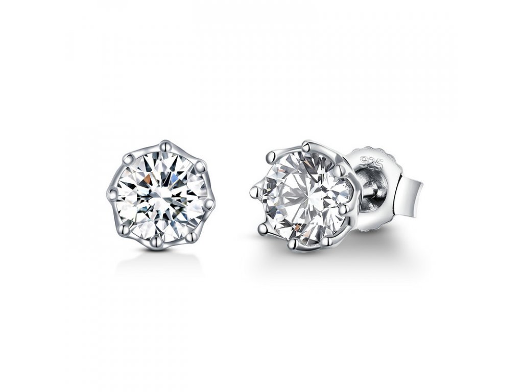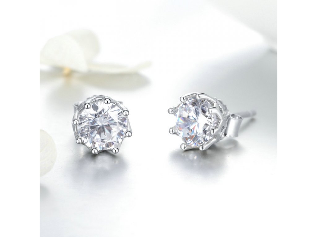 Luxusní stříbrné náušnice v designu jemného křišťálu v podobě broušeného čirého zirkonu. Originální design náušnic, kvalitní zpracování a materiál, ručně dohotovené.
