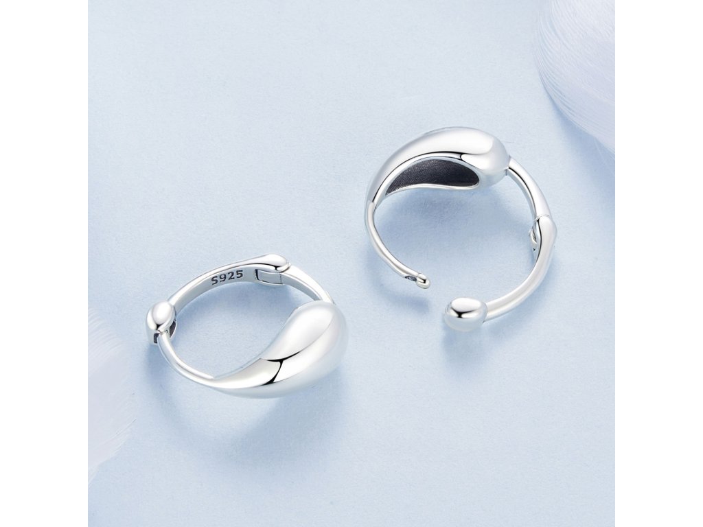 - Stříbrné náušnice v designu minimalistických kapek vody s precizním zpracováním. Vyrobené z kvalitního sterlingového stříbra, doplněné o ručně dokončované detaily, které zajišťují jedinečnost každého kusu.
