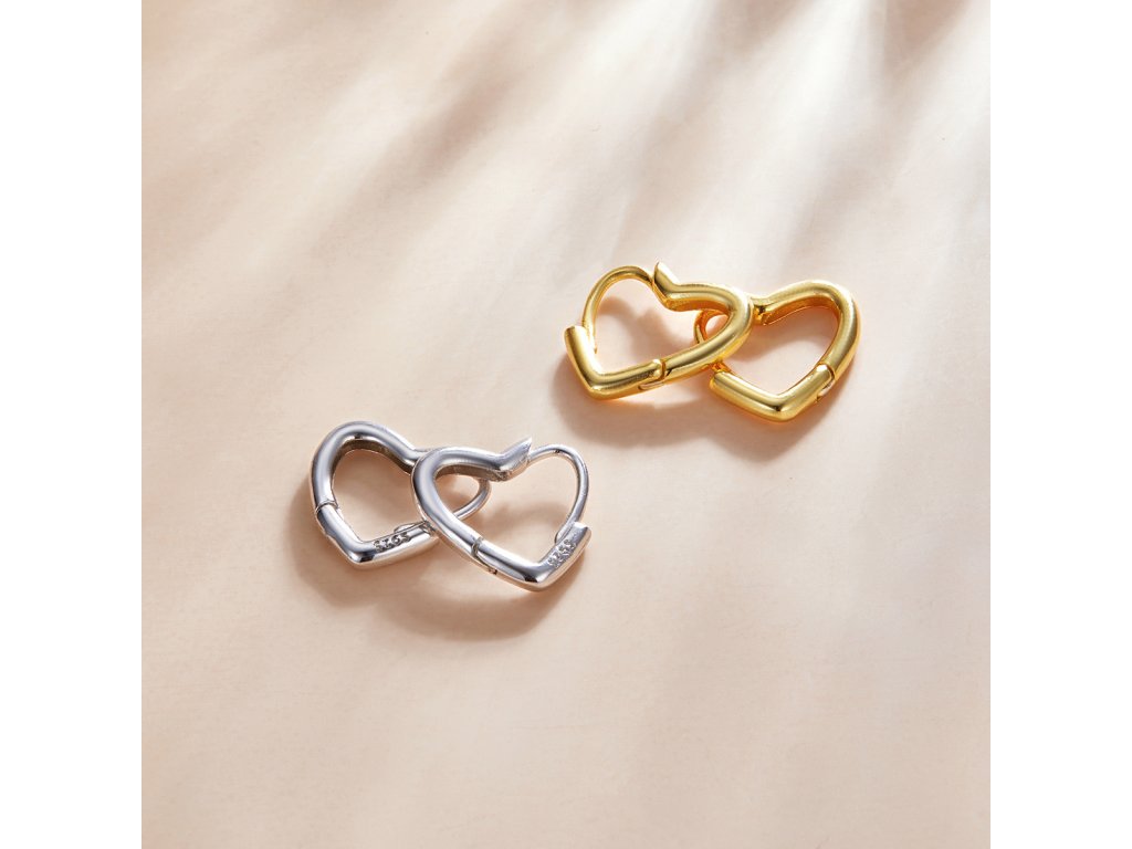 - Stříbrné kruhové náušnice ve tvaru milovaného lesklého srdce. Originální design náušnic, kvalitní zpracování a materiál, ručně dohotovené.