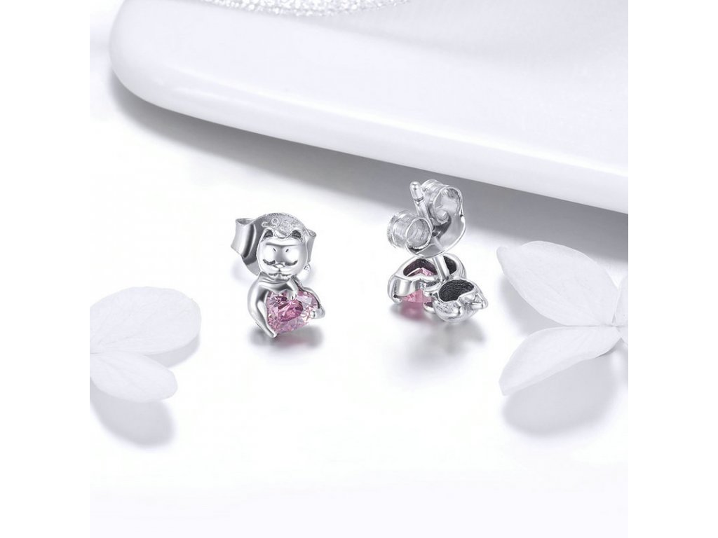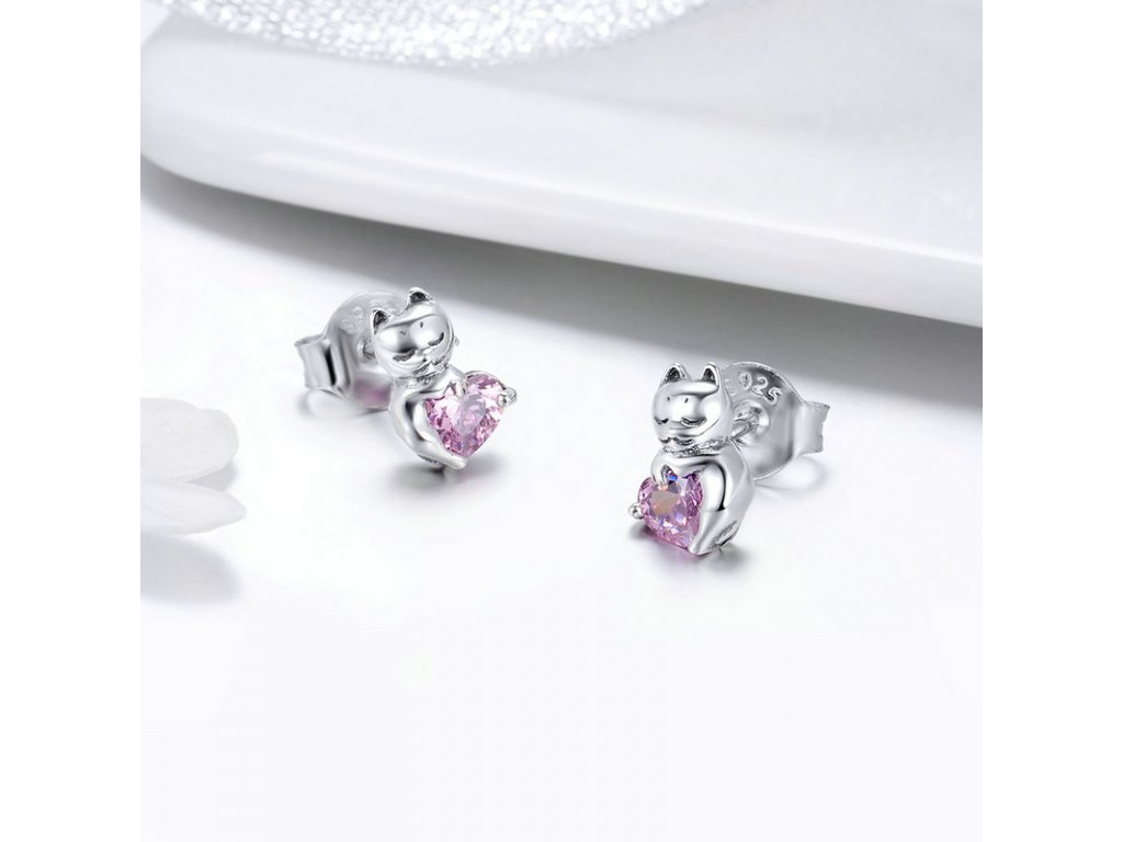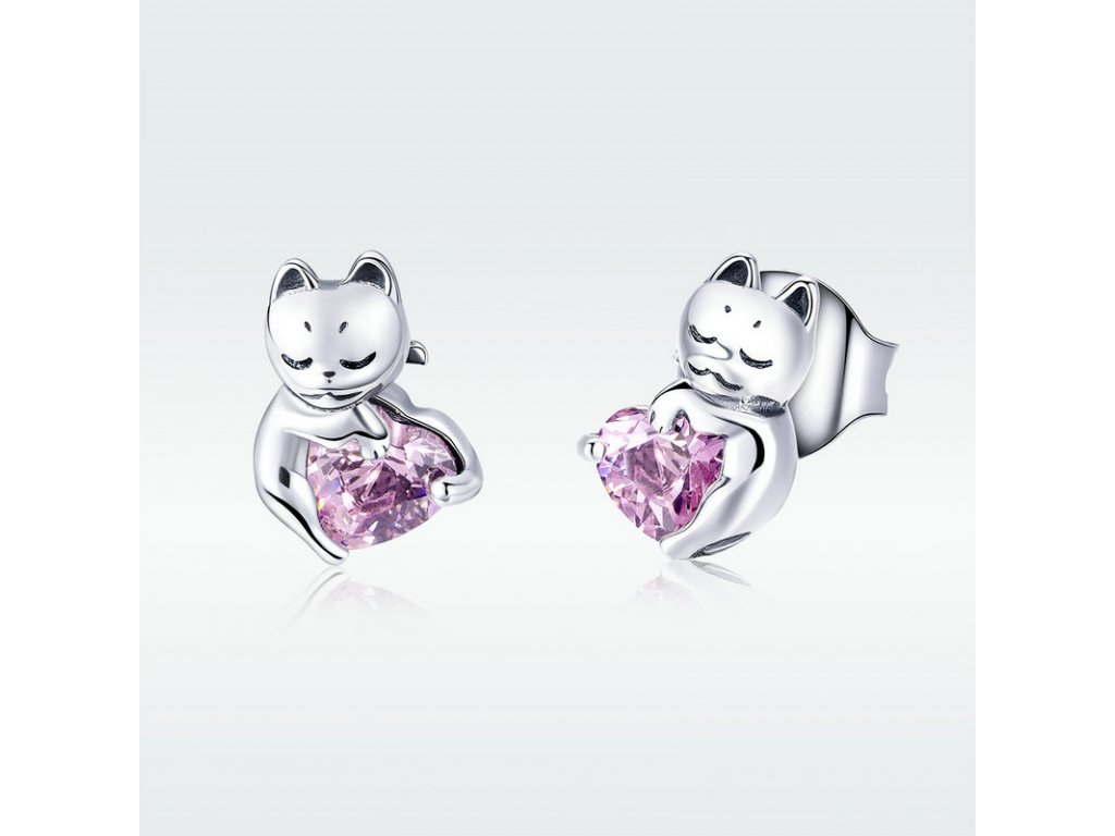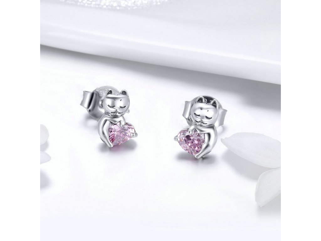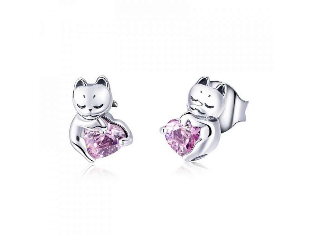 Propracované stříbrné náušnice v designu milované kočky zdobené zirkonem.