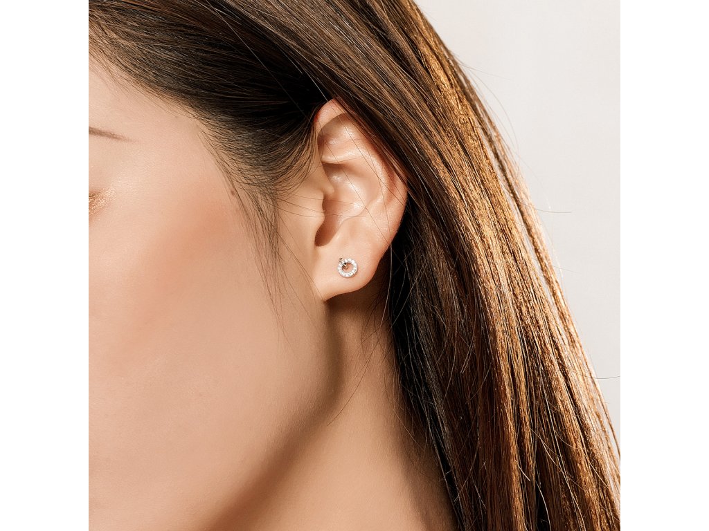 - Stříbrné peckové náušnice v designu Minimalistických třpytivých kroužků zdobených čirými zirkony. Originální design náušnic, kvalitní zpracování a materiál, ručně dohotovené.