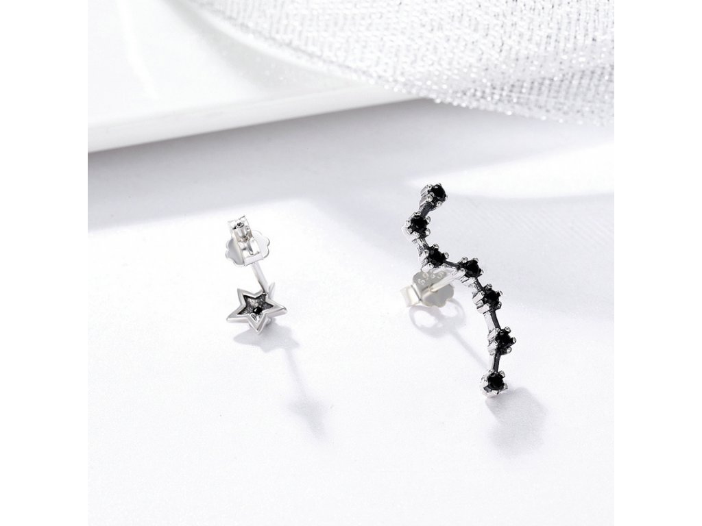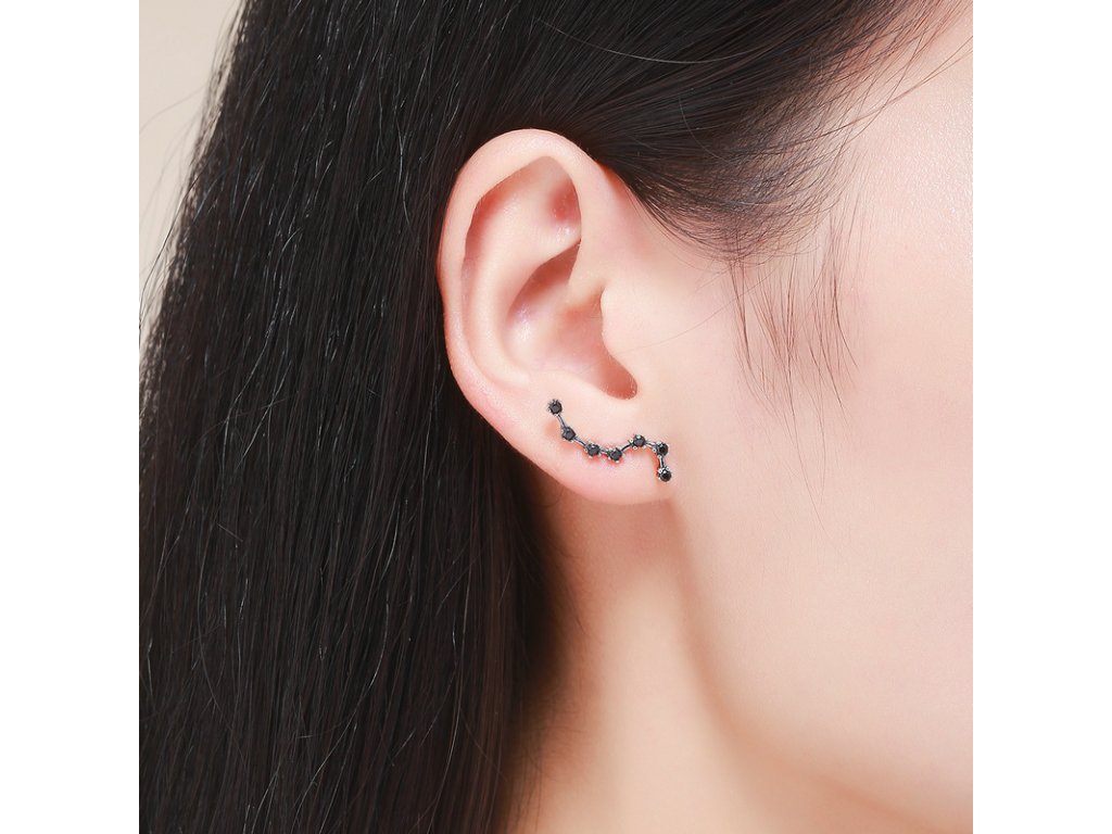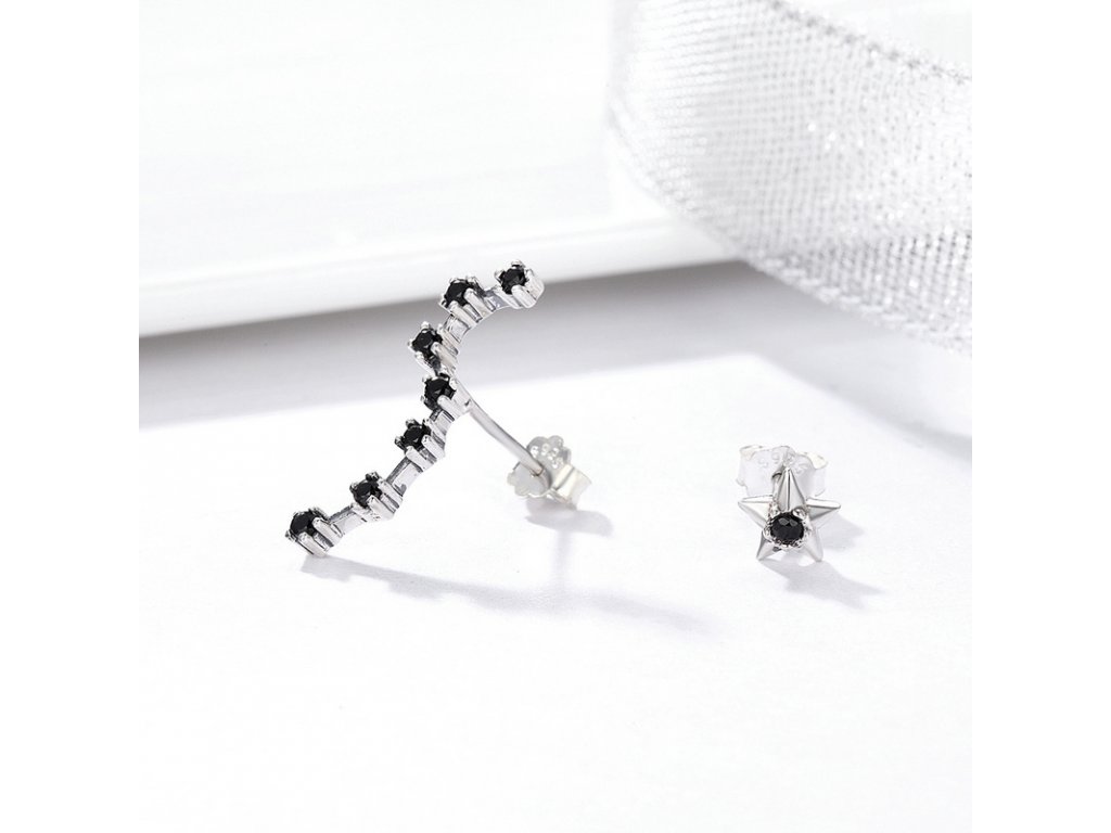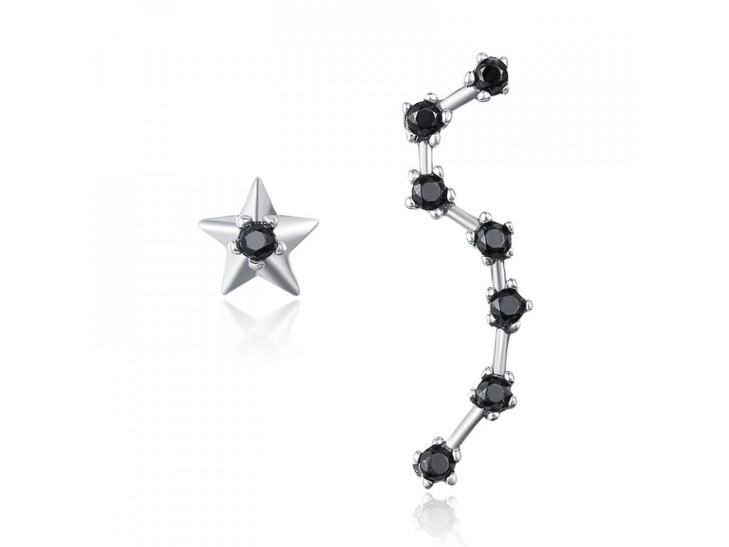 Luxusní a propracované stříbrné peckové/přes ucho náušnice v designu hvězdné oblohy zdobené zirkony.