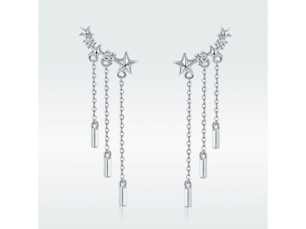Luxusní a propracované stříbrné náušnice v designu padajících hvězd zdobené zirkony.