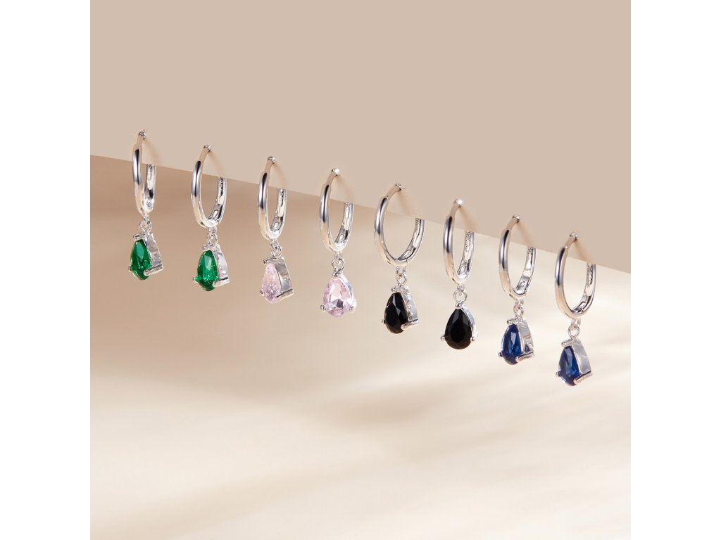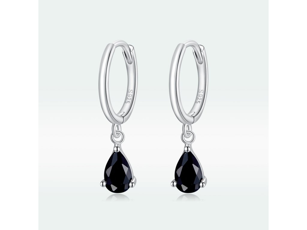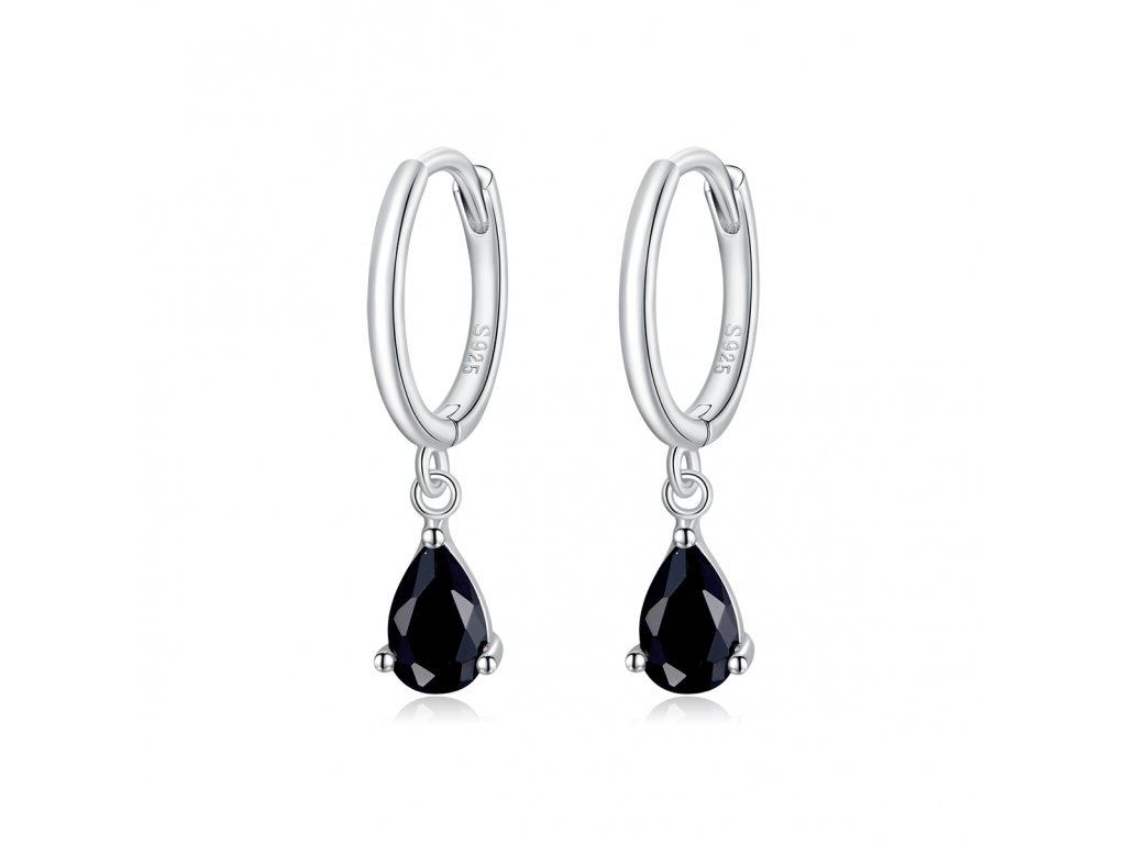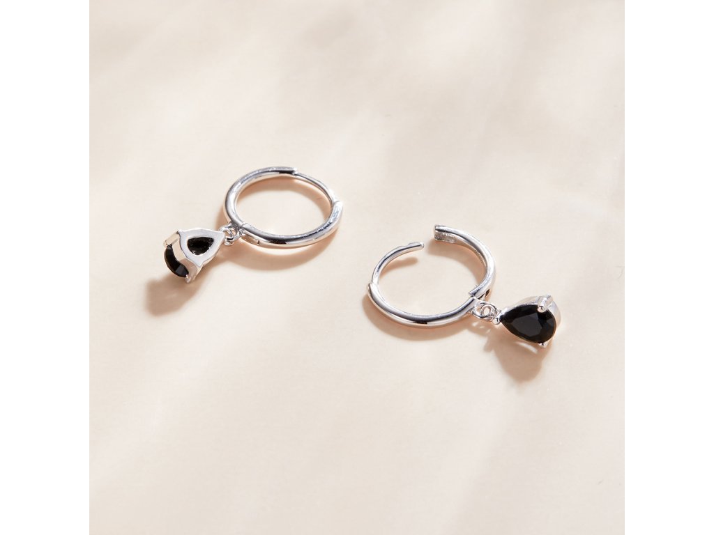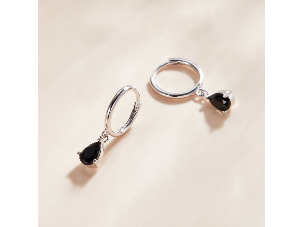 - Stříbrné visací náušnice v designu Padajících kapek zdobených černými broušenými zirkony. Originální design náušnic, kvalitní zpracování a materiál, ručně dohotovené.