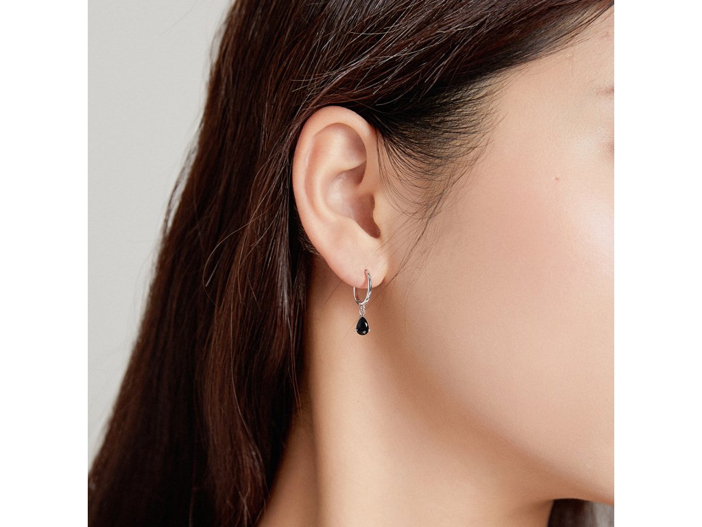 Elenys stříbrné náušnice Padající kapky černé-BK