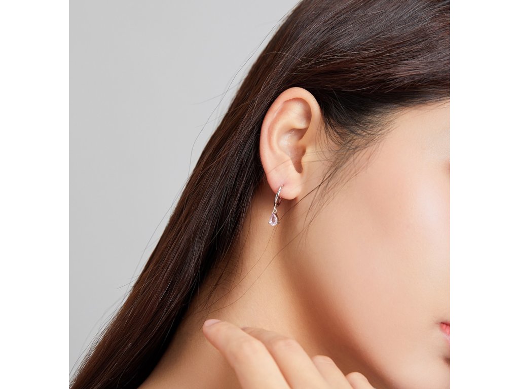 Elenys stříbrné náušnice Padající kapky růžové-PK