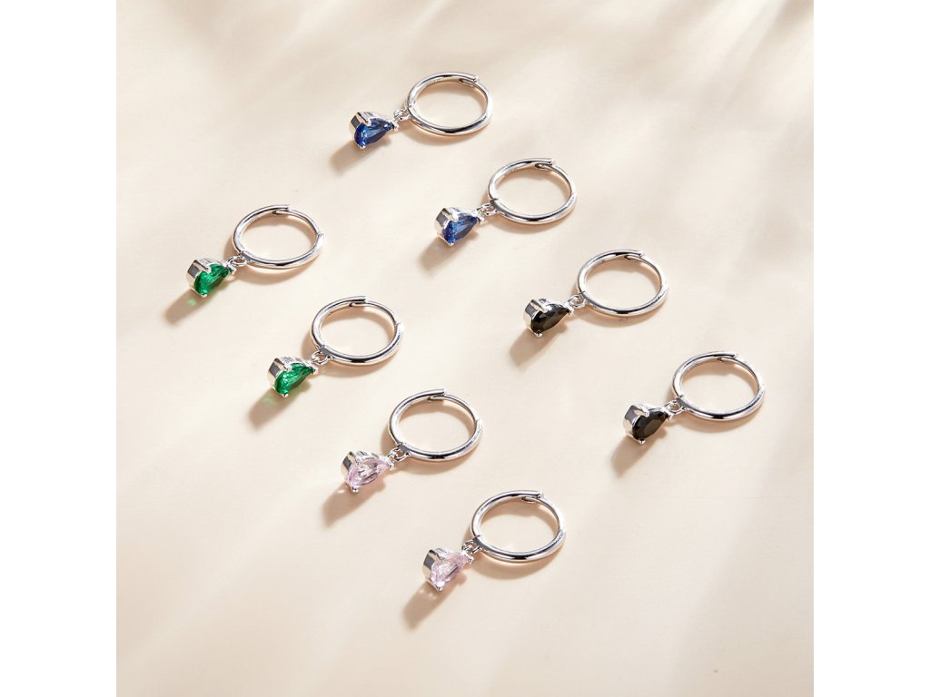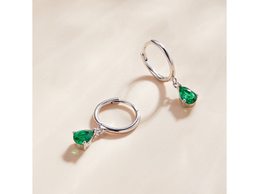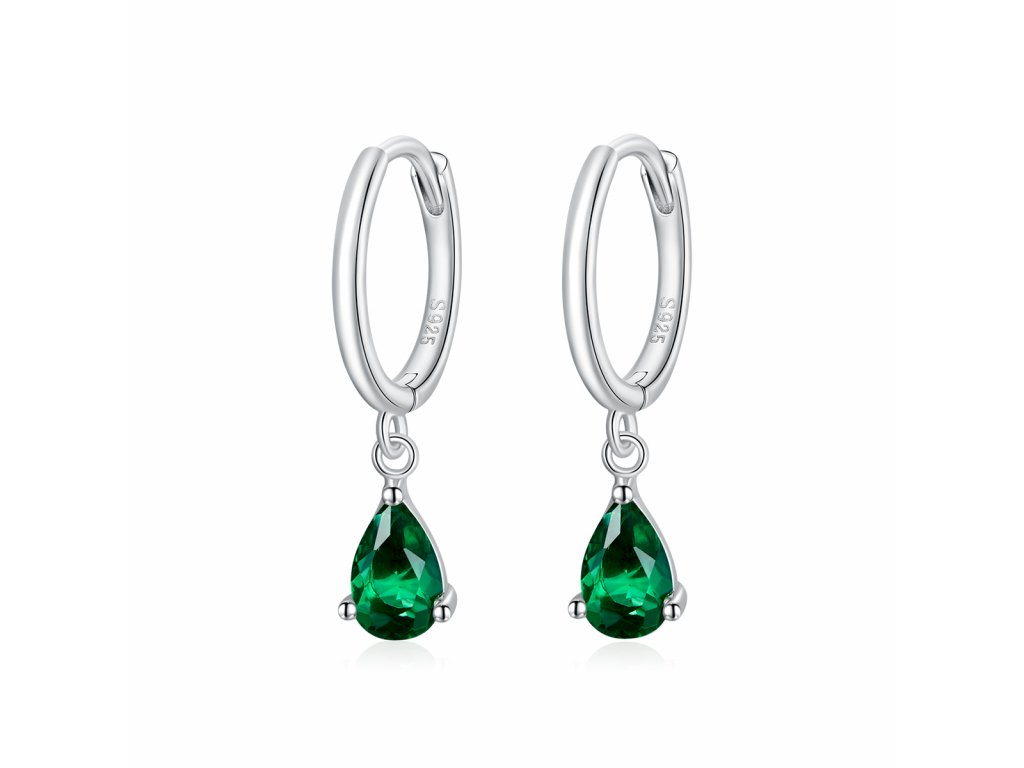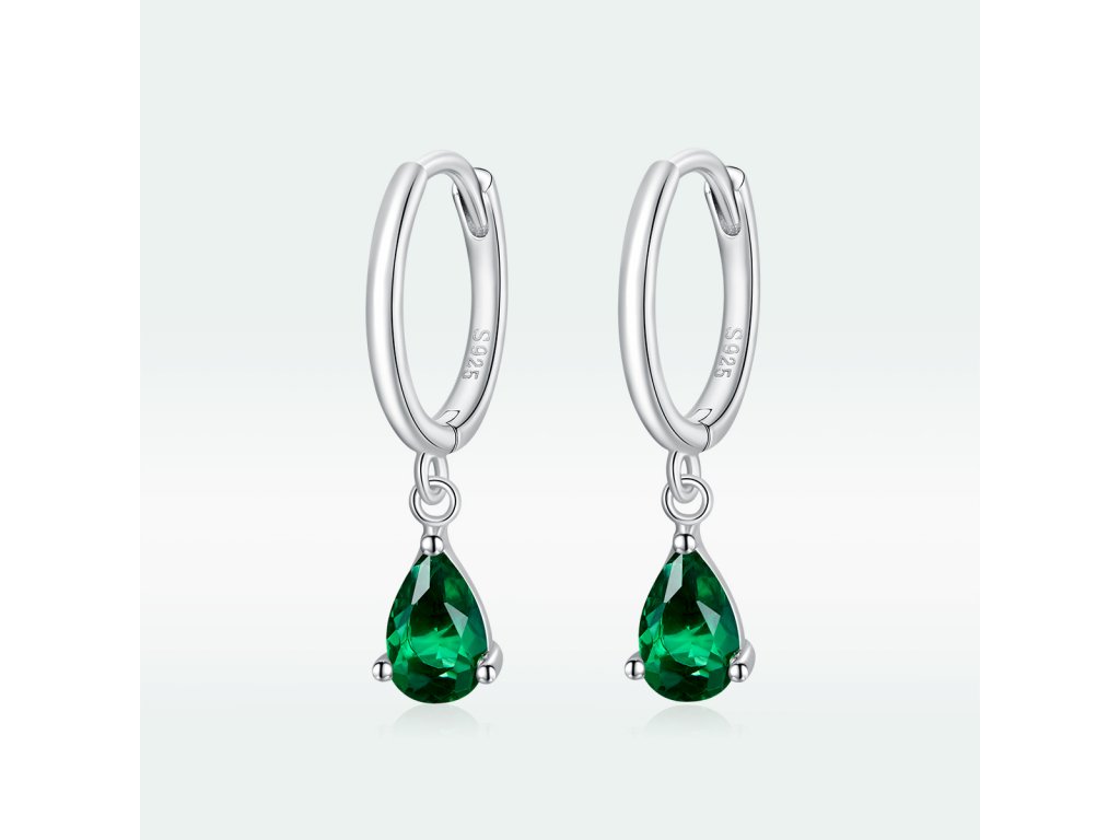 - Stříbrné visací náušnice v designu Padajících kapek zdobených smaragdově zelnými broušenými zirkony. Originální design náušnic, kvalitní zpracování a materiál, ručně dohotovené.