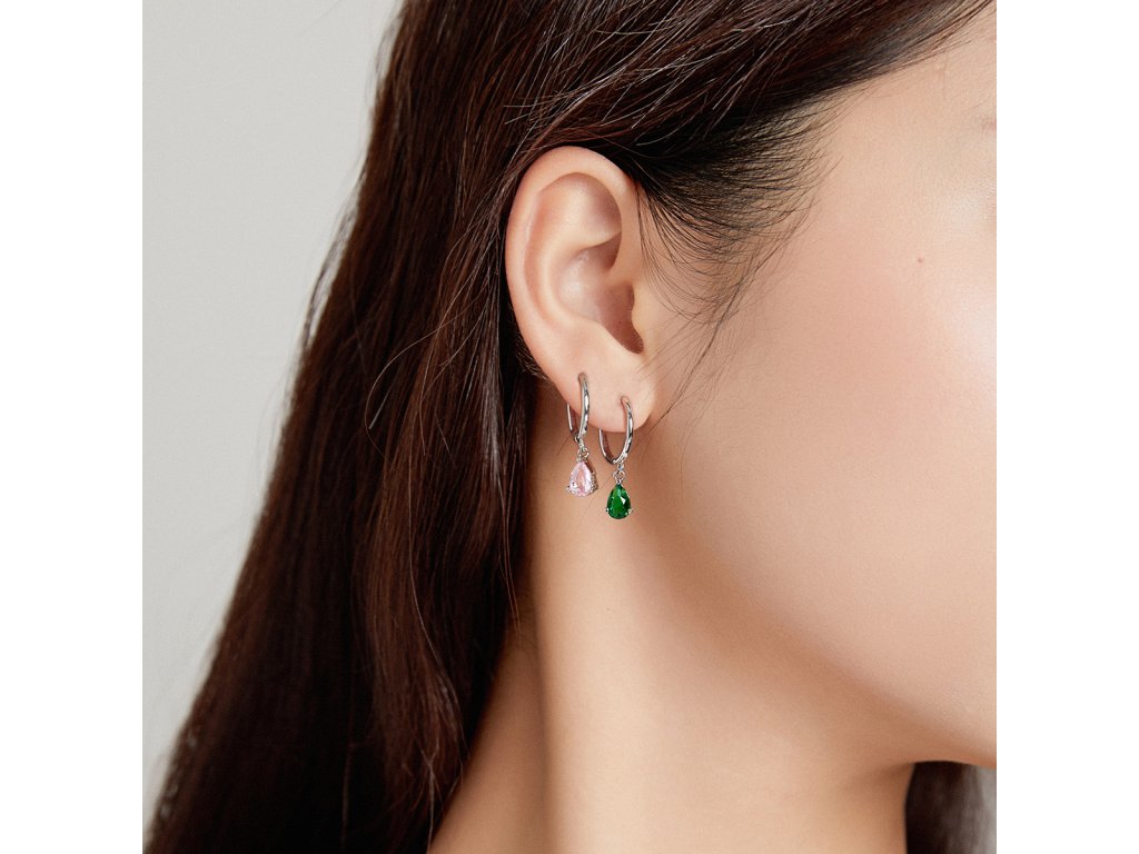 Elenys stříbrné náušnice Padající kapky zelené-GN