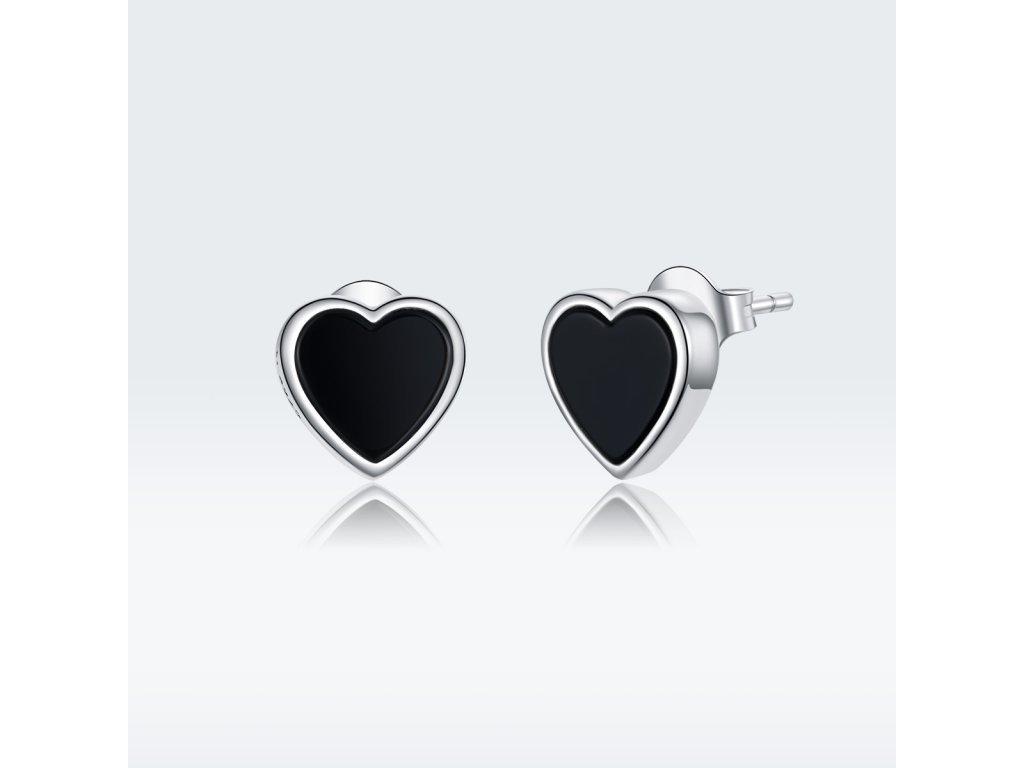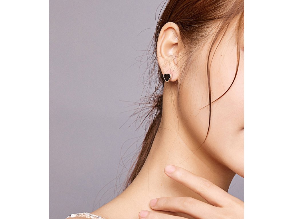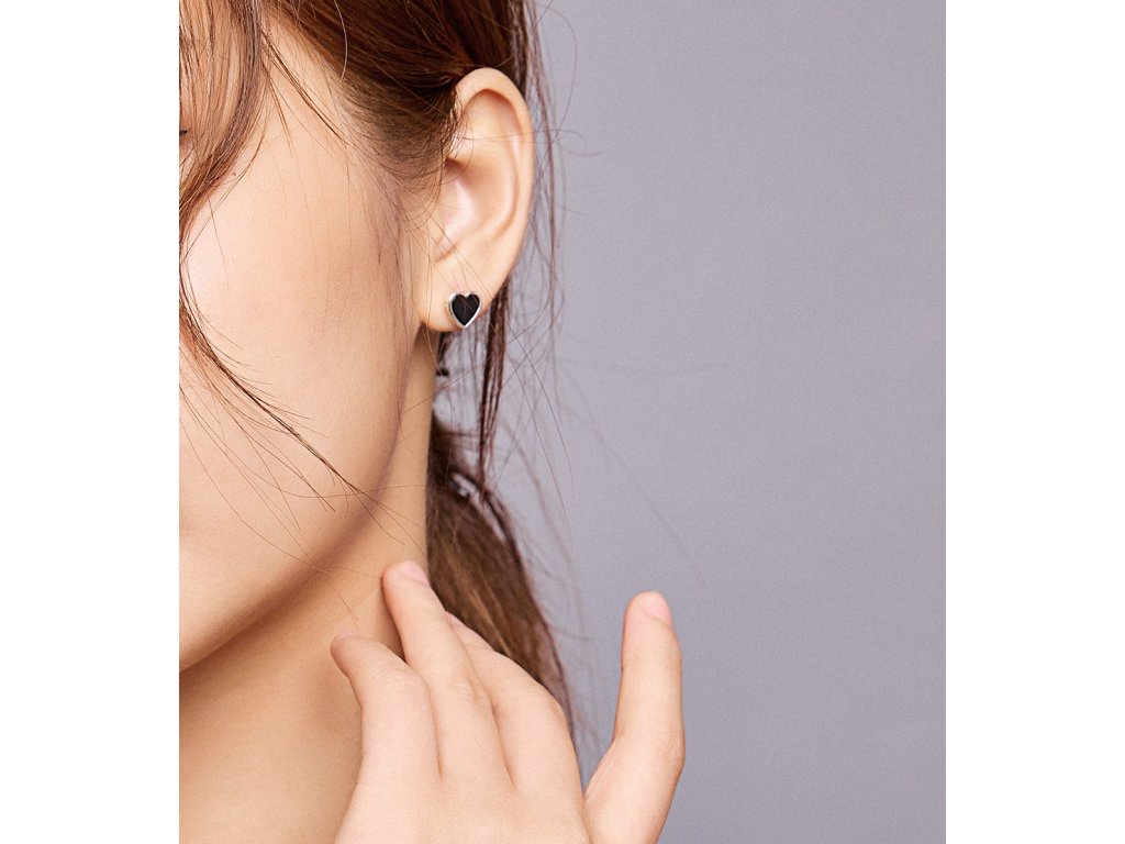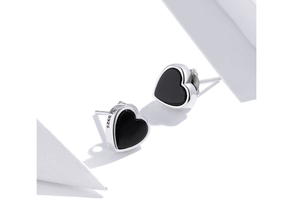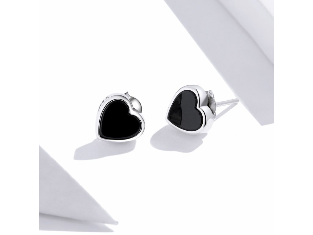 - Stříbrné peckové náušnice v designu minimalistických srdíček zdobených ručně nanášenou černou glazurou. Originální design náušnic, kvalitní zpracování a materiál, ručně dohotovené.