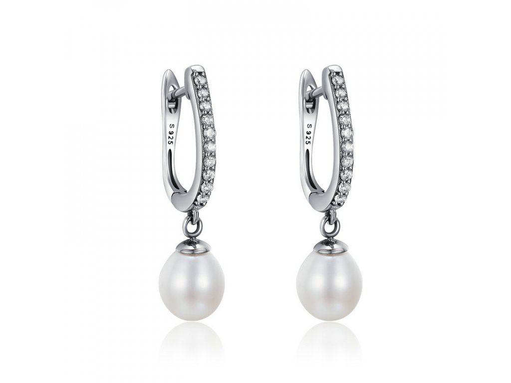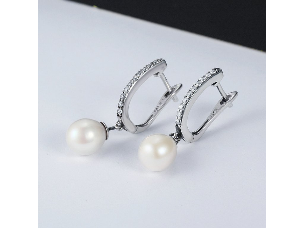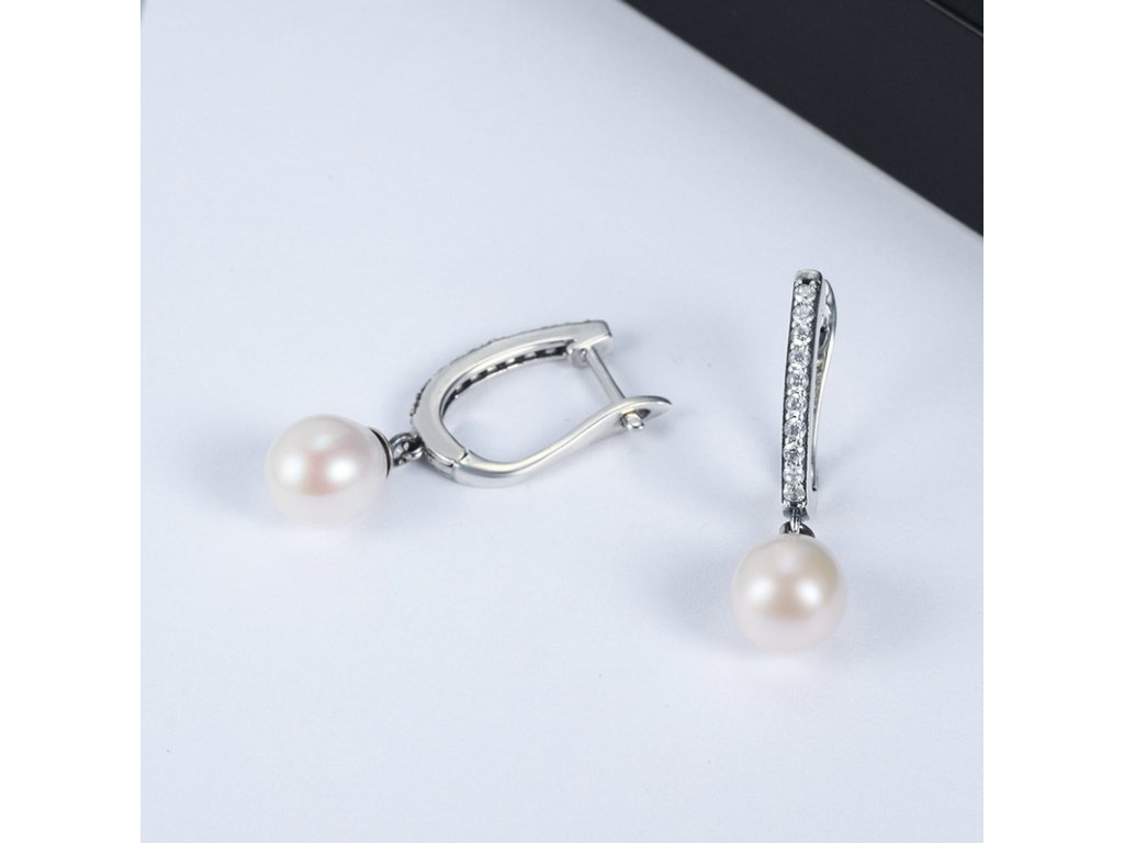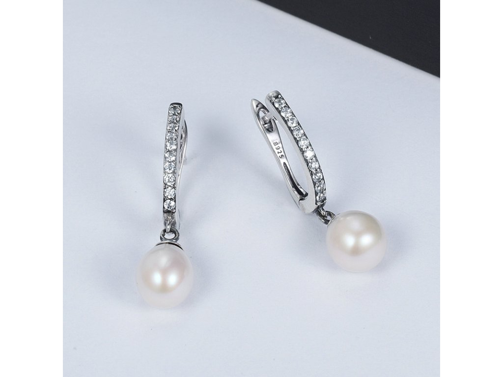 Luxusní a propracované náušnice z kvalitního stříbra obohacené jemnými perly a ručně posázenými třpytivými zirkony.