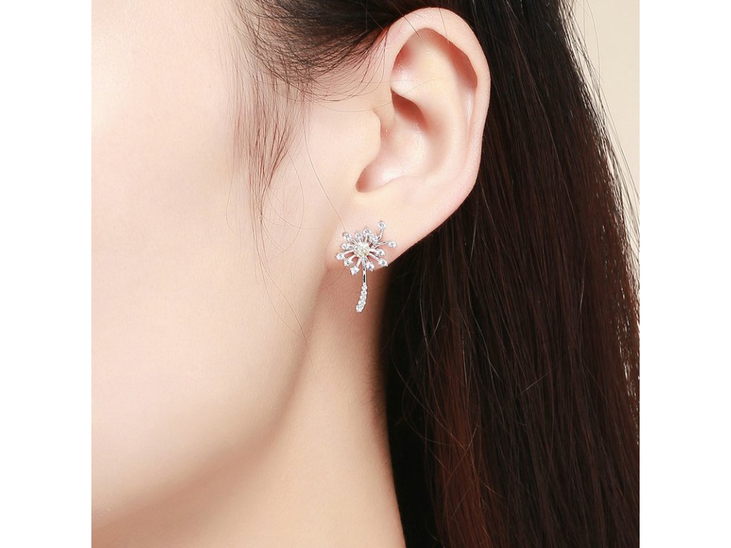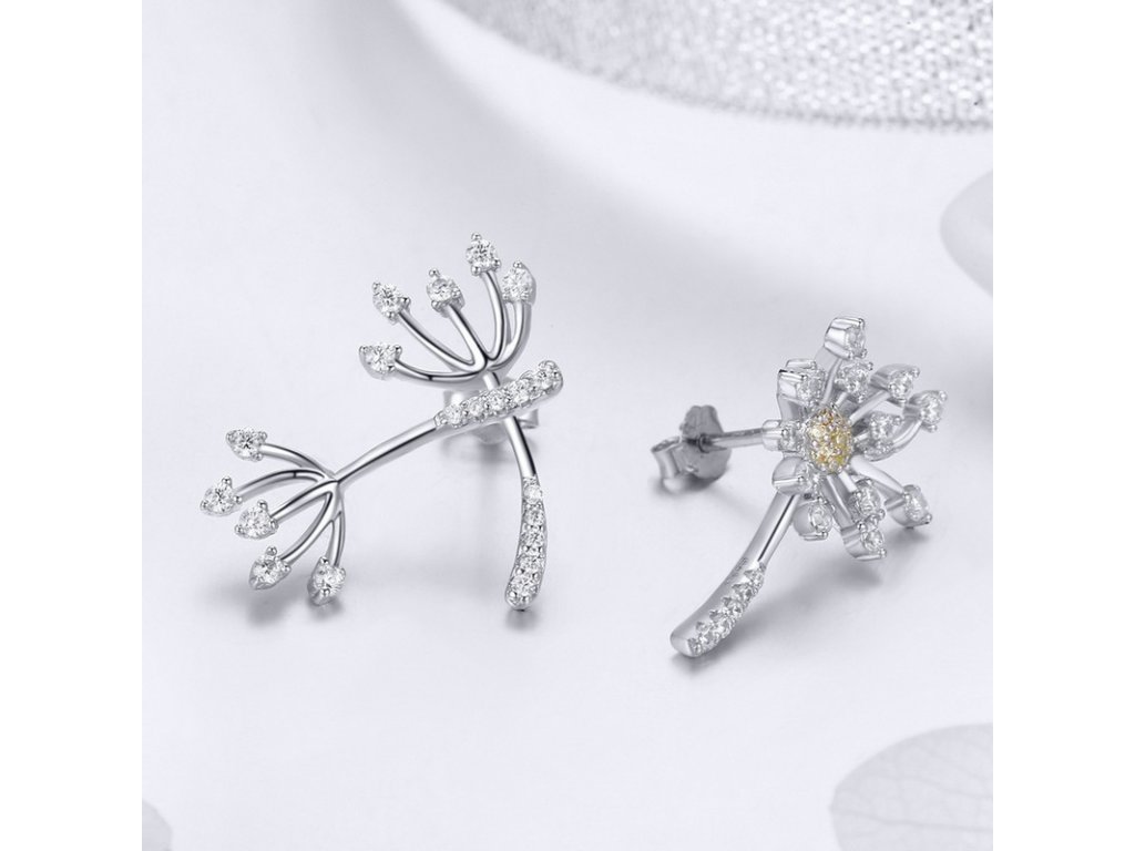 - Krásné a elegantní stříbrné náušnice v designu poletavé pampelišky obohacené třpytivými zirkony. Originální design náušnic, kvalitní zpracování a materiál, ručně dohotovené.
