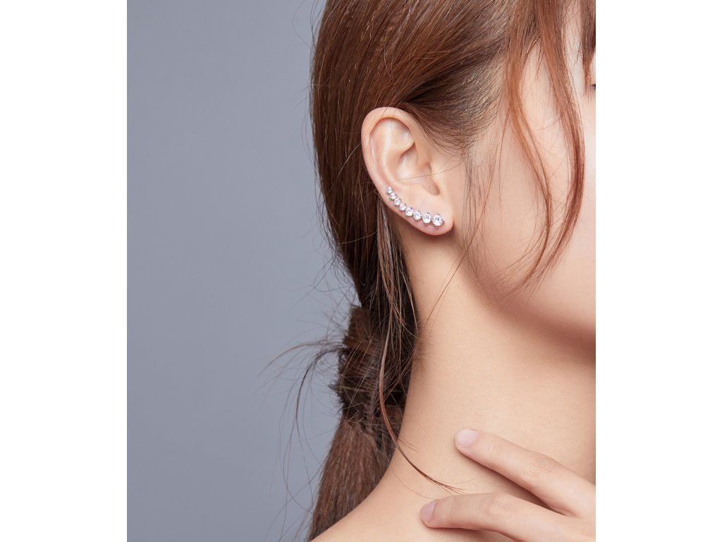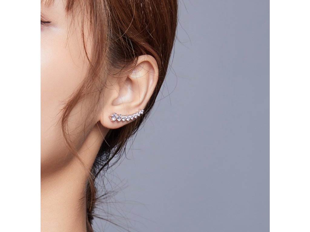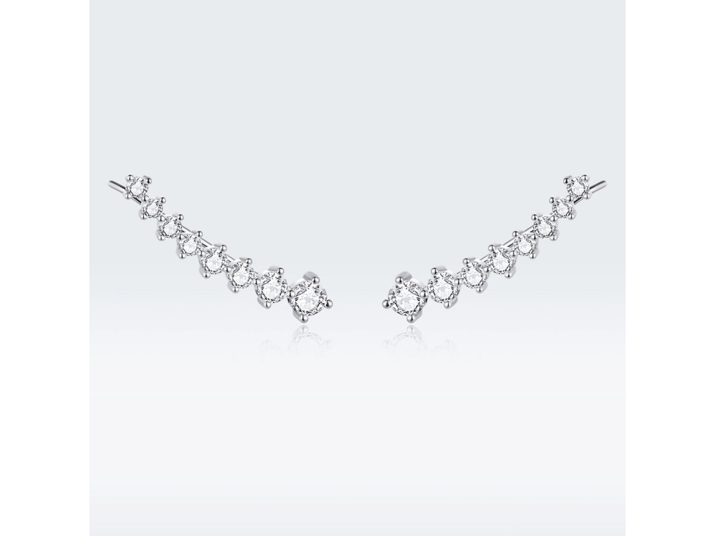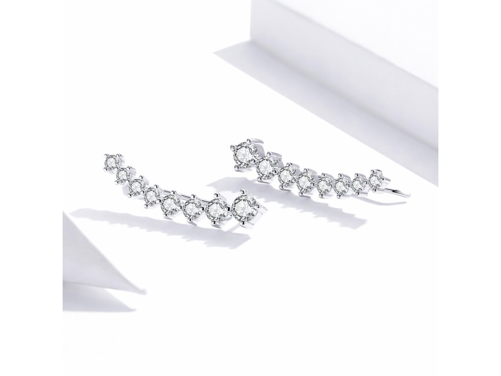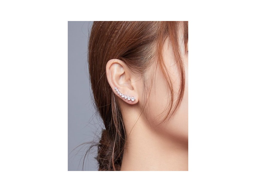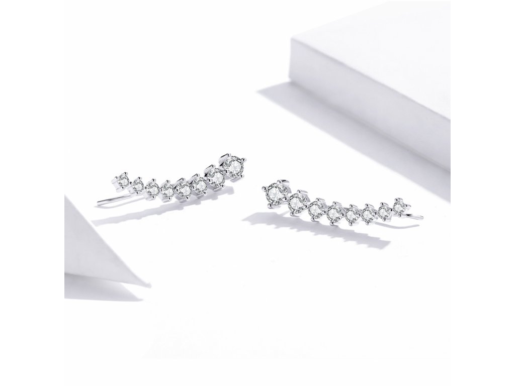- Stříbrné náušnice přes ucho v designu Třpytivých kamenů v podobě čirých zirkonů. Originální design náušnic, kvalitní zpracování a materiál, ručně dohotovené.
