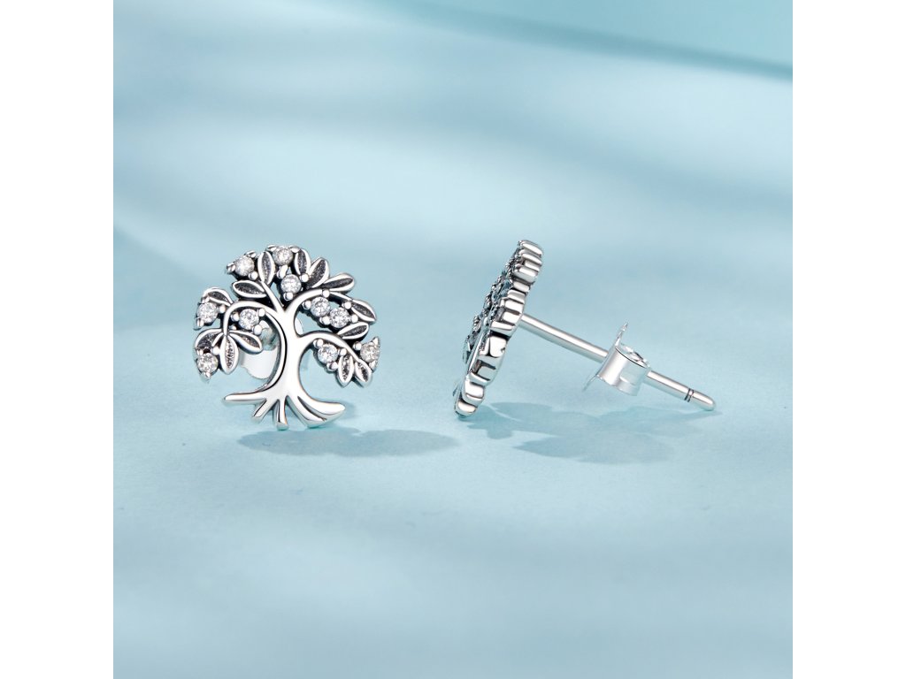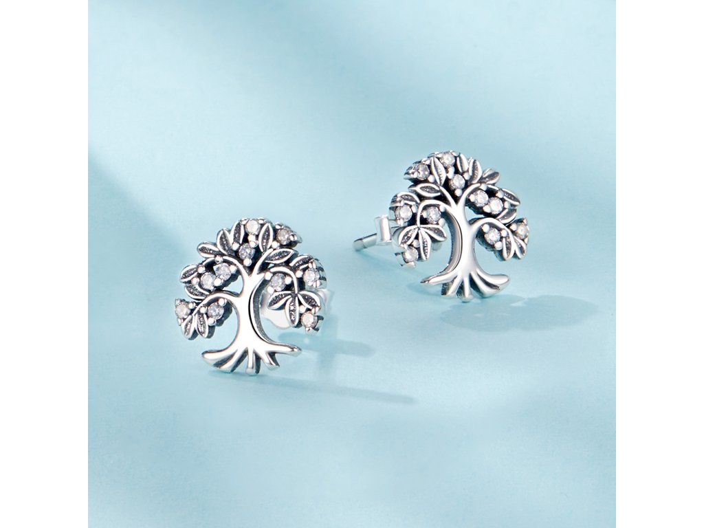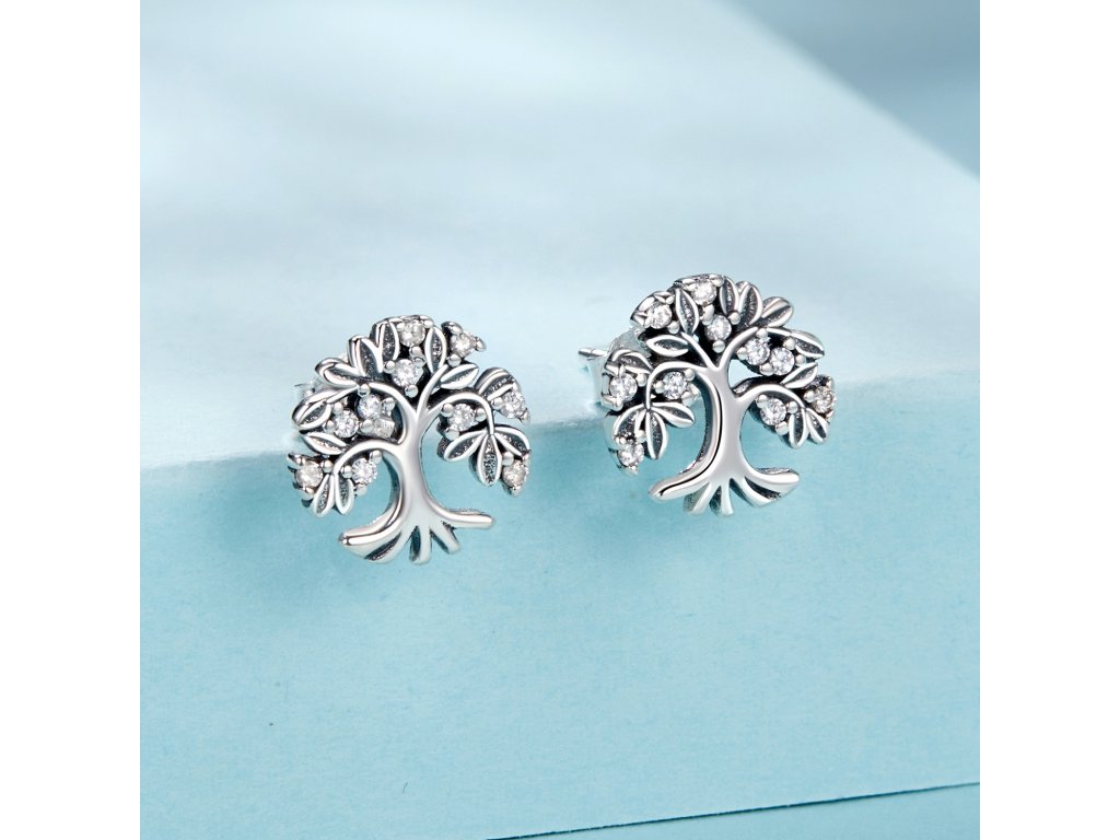 - Stříbrné peckové náušnice strom života osázené zirkony. Originální design náušnic, kvalitní zpracování a materiál, ručně dohotovené.