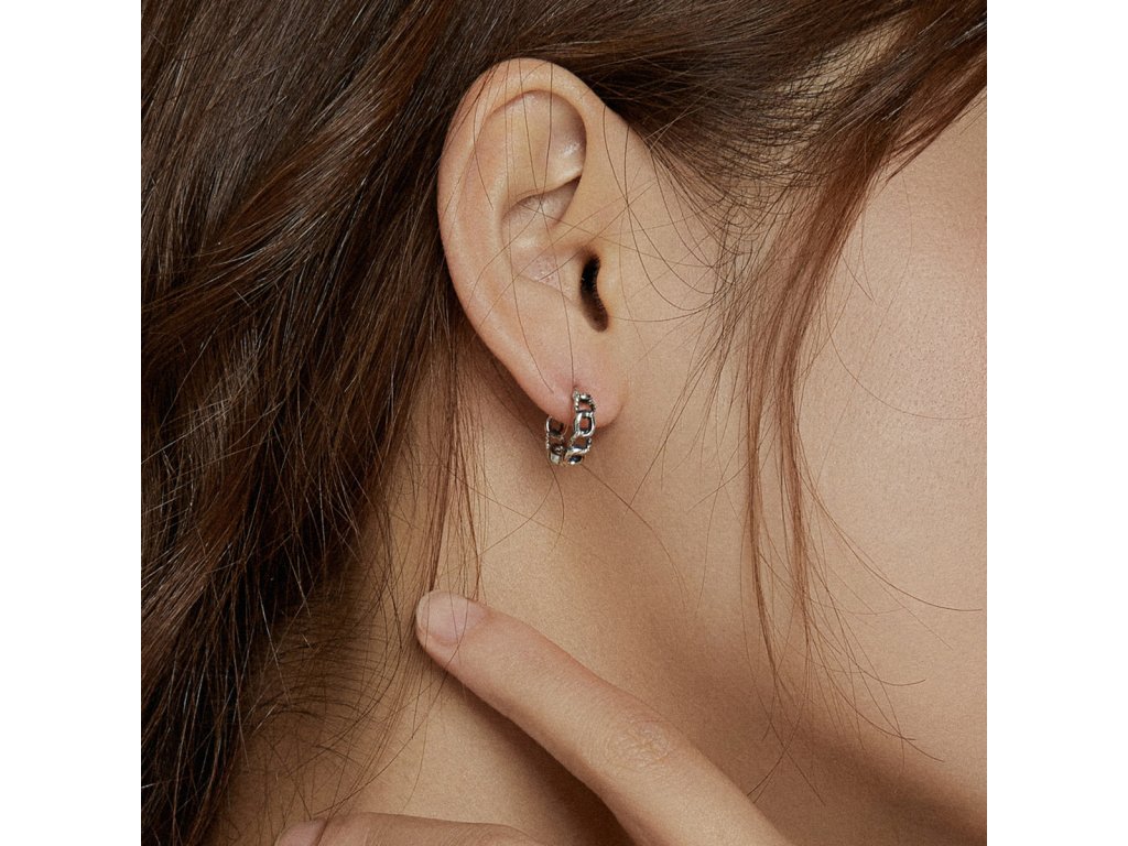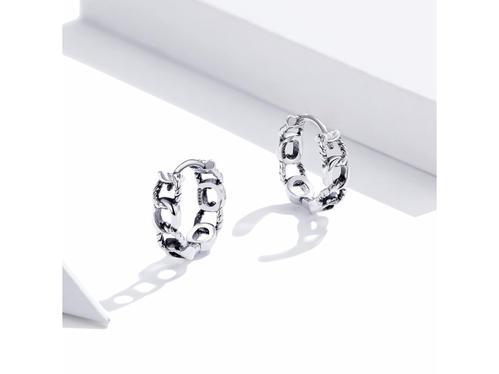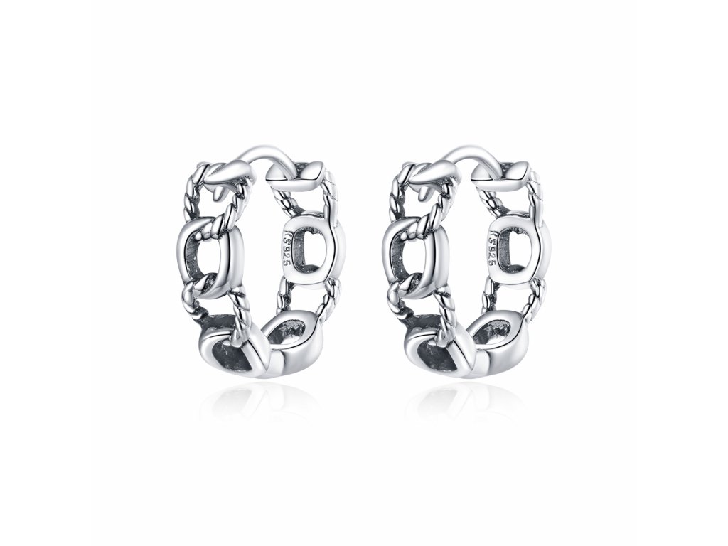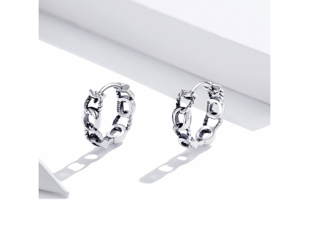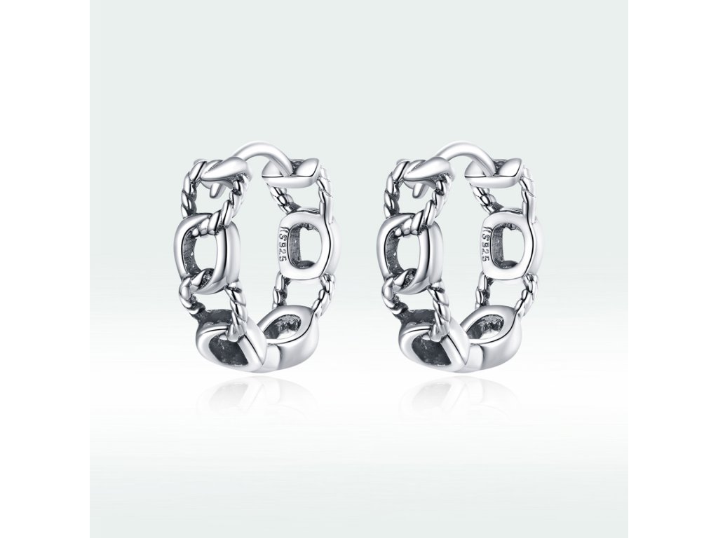- Stříbrné kruhové náušnice Svázané v designu jemného řetězu. Originální design náušnic, kvalitní zpracování a materiál, ručně dohotovené.