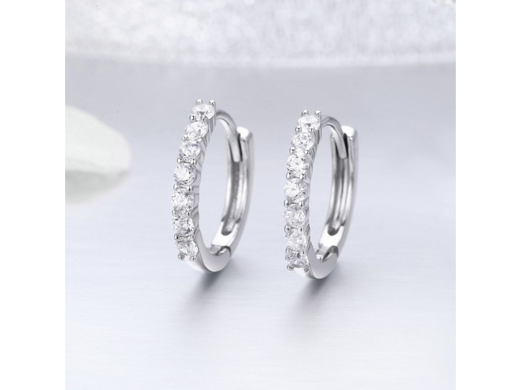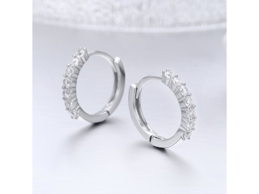 Luxusní a propracované kruhové náušnice v designu třpytivých kroužků zdobené zirkony.