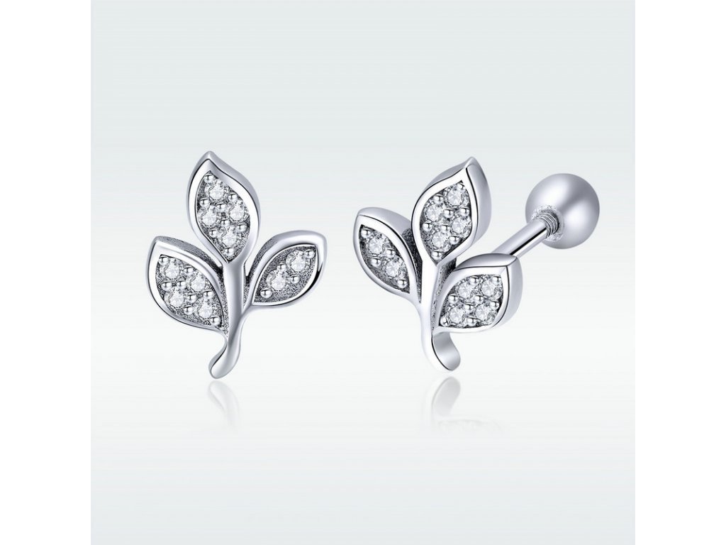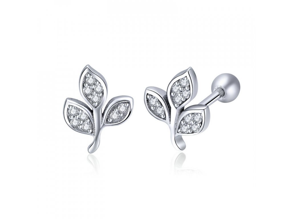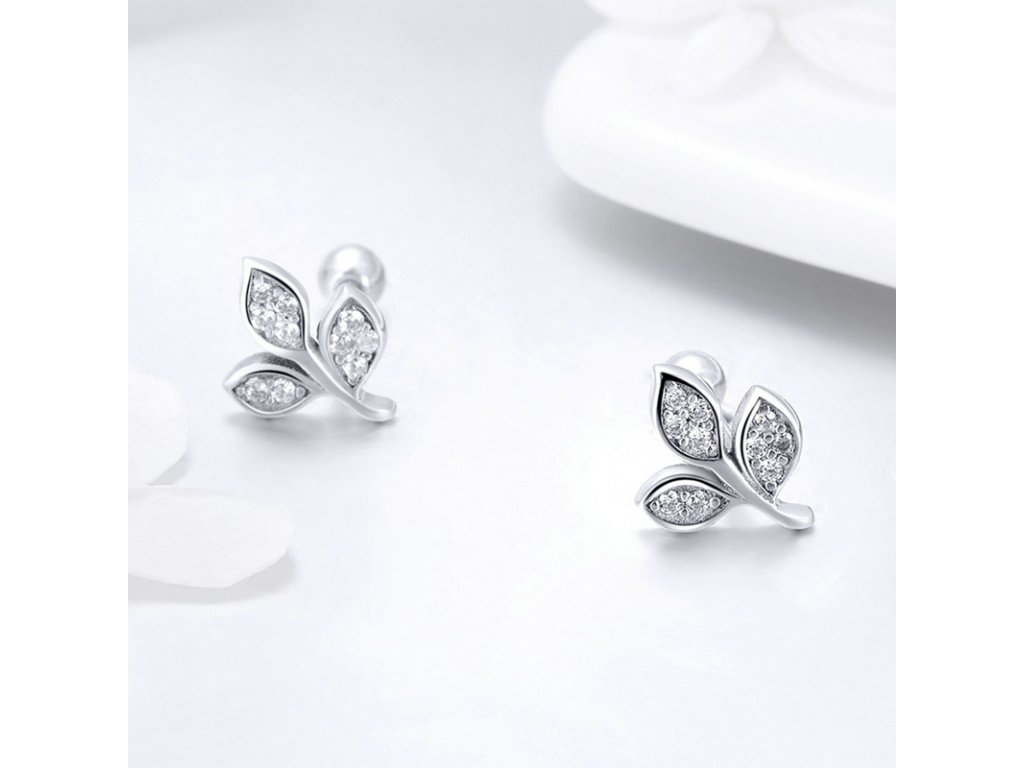 Luxusní stříbrné náušnice ve tvaru lístků obohacených třpytivými zirkony. Originální design náušnic, kvalitní zpracování a materiál, ručně dohotovené. Slaďte náušnice s ostatními šperky značky Royal Fashion a vytvořte tak neodolatelný set.