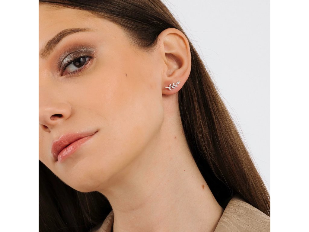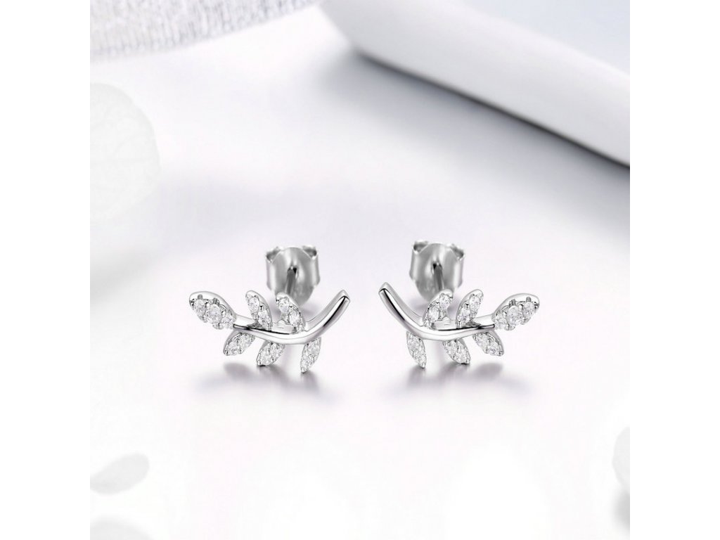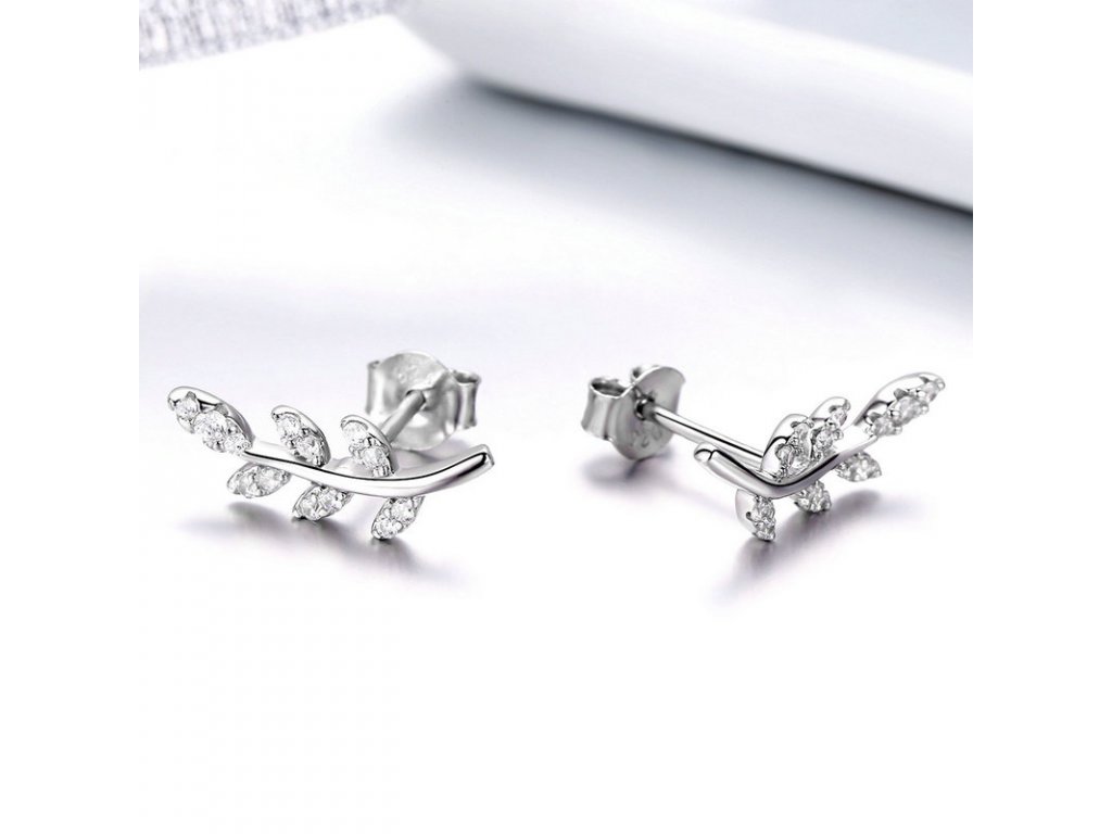 Luxusní stříbrné náušnice v designu třpytivých lístků s jemnými čirými zirkony. Originální design náušnic, kvalitní zpracování a materiál, ručně dohotovené.