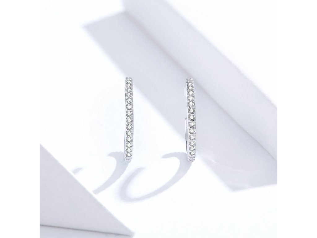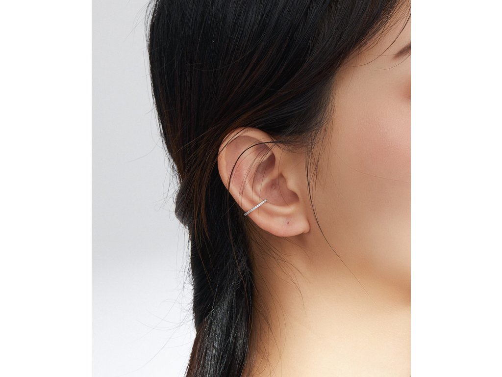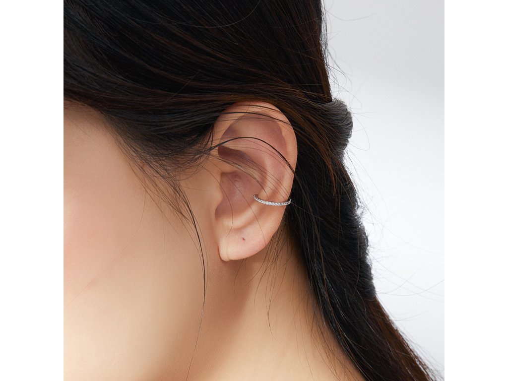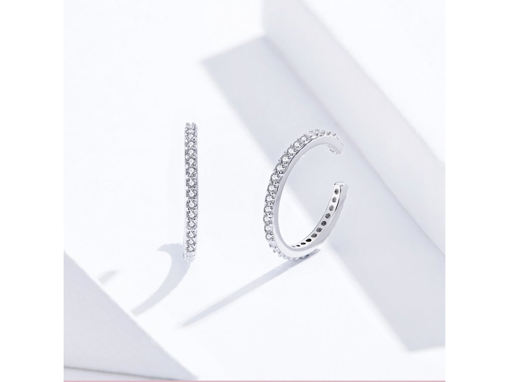 - Stříbrné náušnice v designu Třpytivých manžet na ucho zdobených čirými kameny v podobě zirkonů. Originální design náušnic, kvalitní zpracování a materiál, ručně dohotovené.