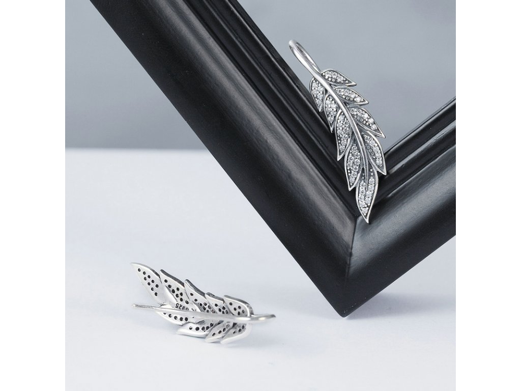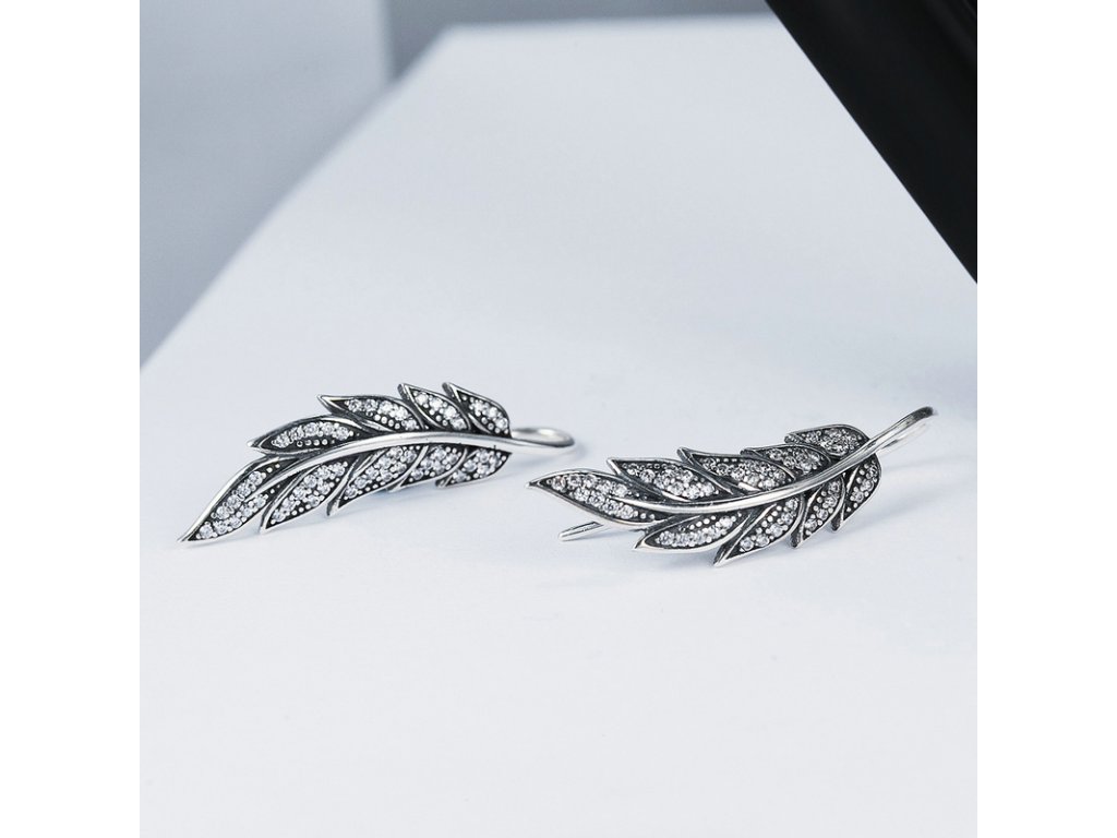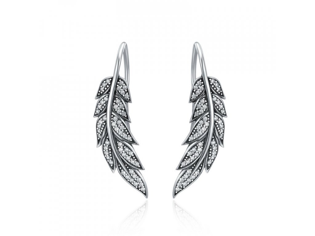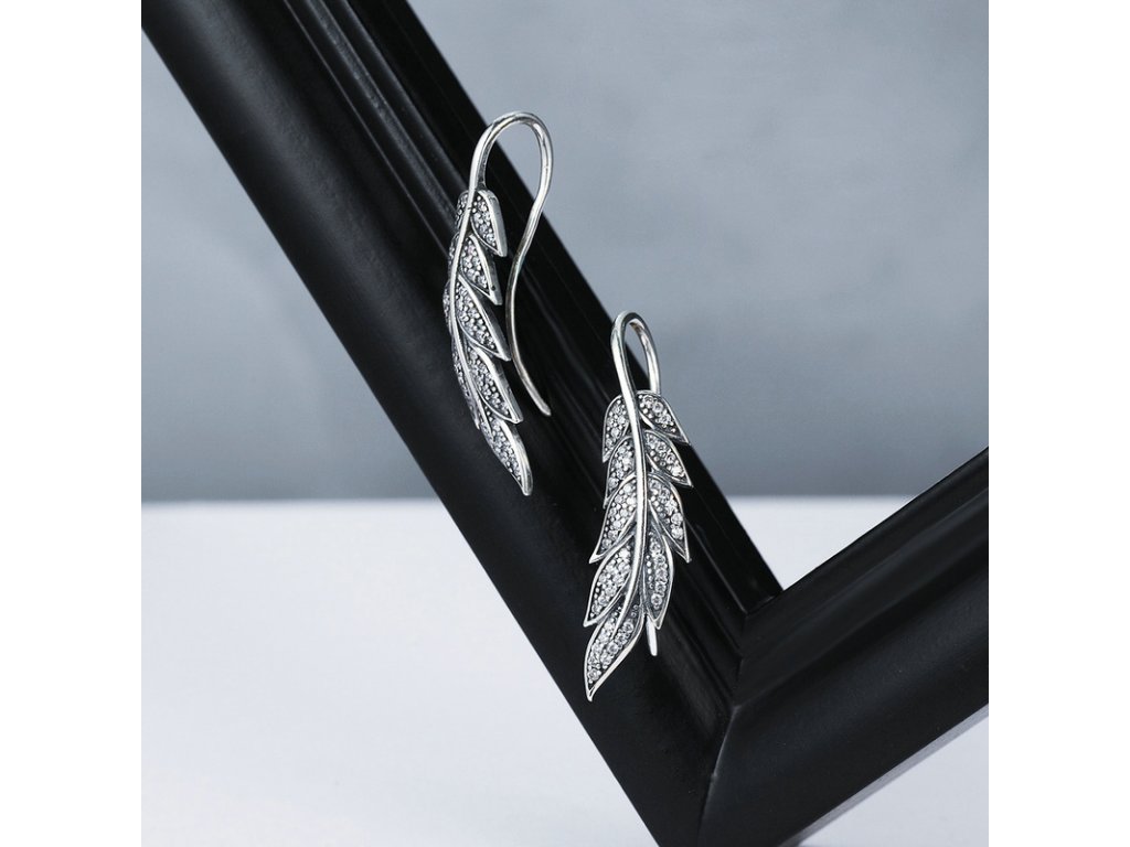 - Stříbrné visací náušnice v designu Třpytivých lístků zdobených čirými kameny v podobě zirkonů. Originální design náušnic, kvalitní zpracování a materiál, ručně dohotovené.