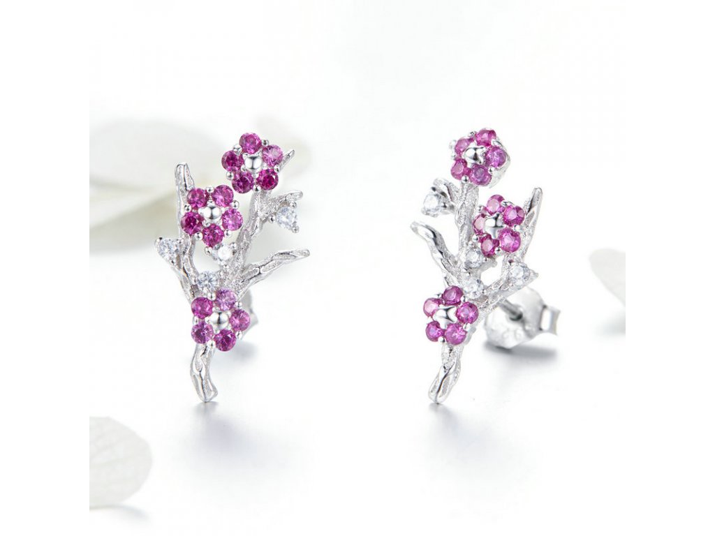 Luxusní stříbrné náušnice v designu zimní květiny zdobené fialovými zirkony. Originální design náušnic, kvalitní zpracování a materiál, ručně dohotovené.