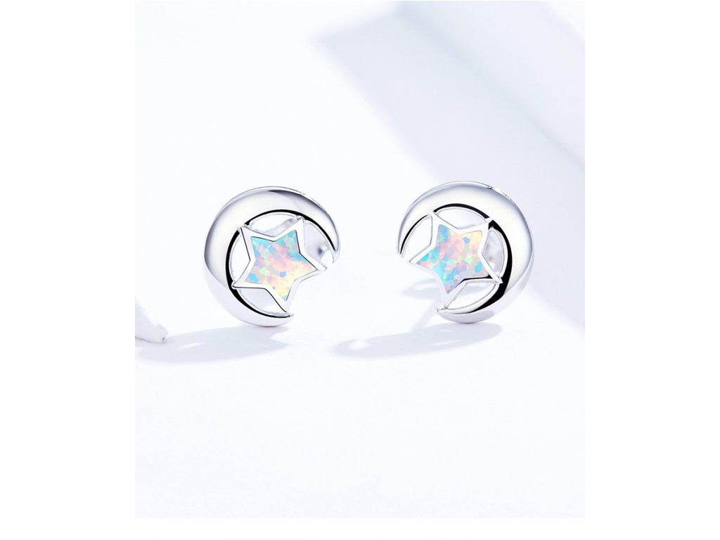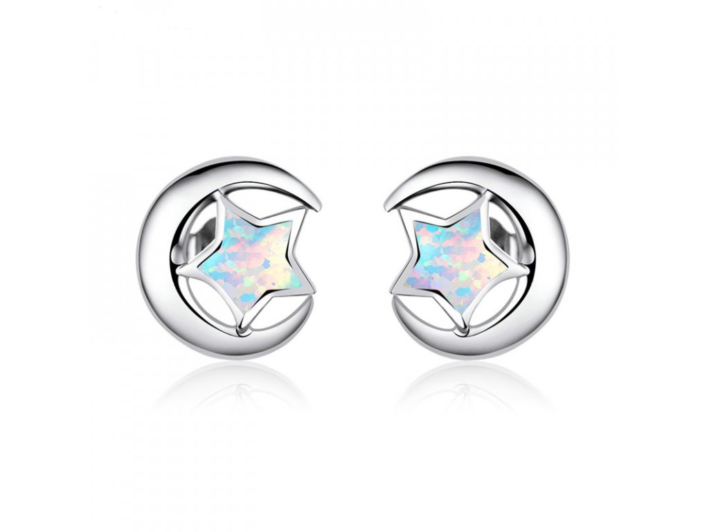 - Stříbrné peckové náušnice v designu měsíce a opálových hvězdiček. Originální design náušnic, kvalitní zpracování a materiál, ručně dohotovené.