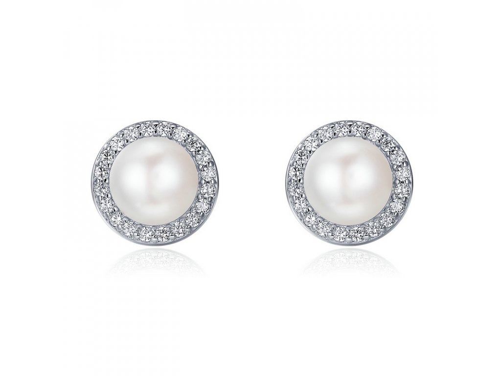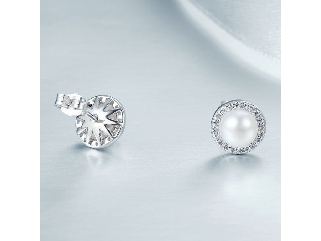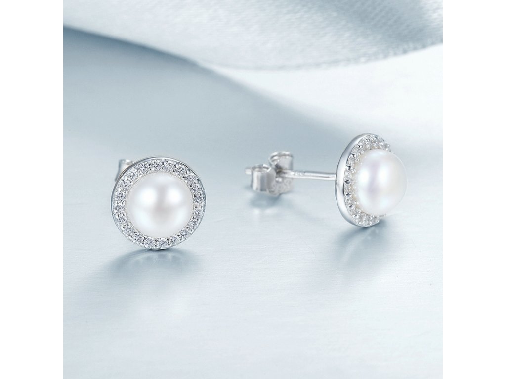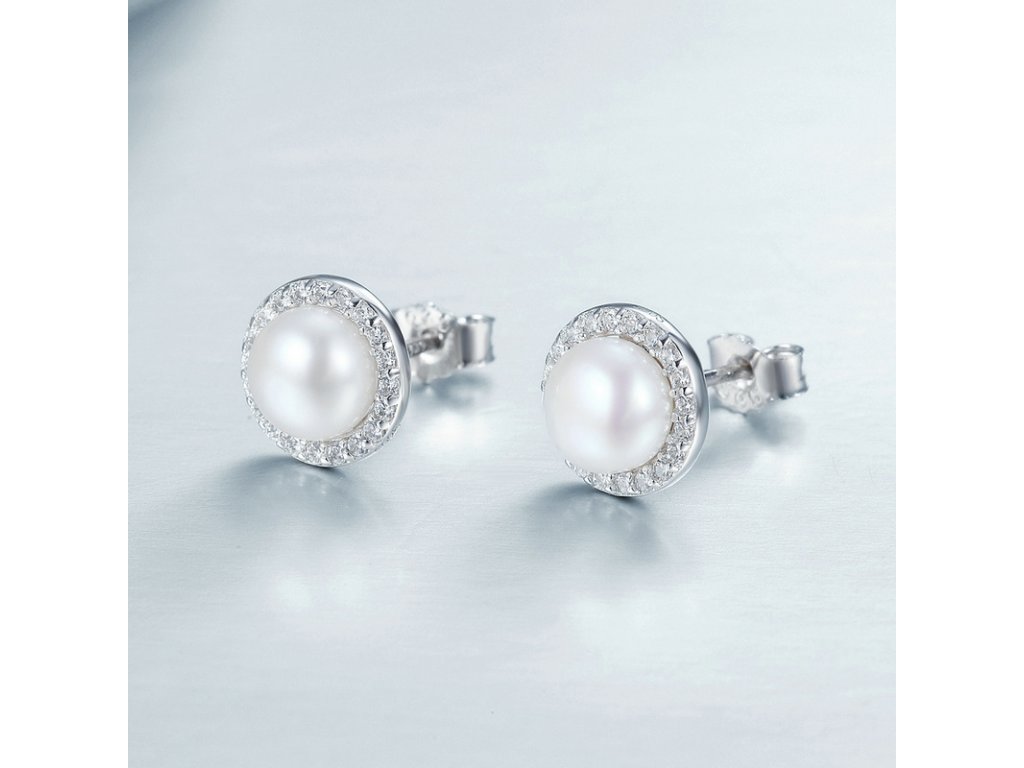 - Stříbrné náušnice s jemnými perly a ručně osázenými čirými zirkony.