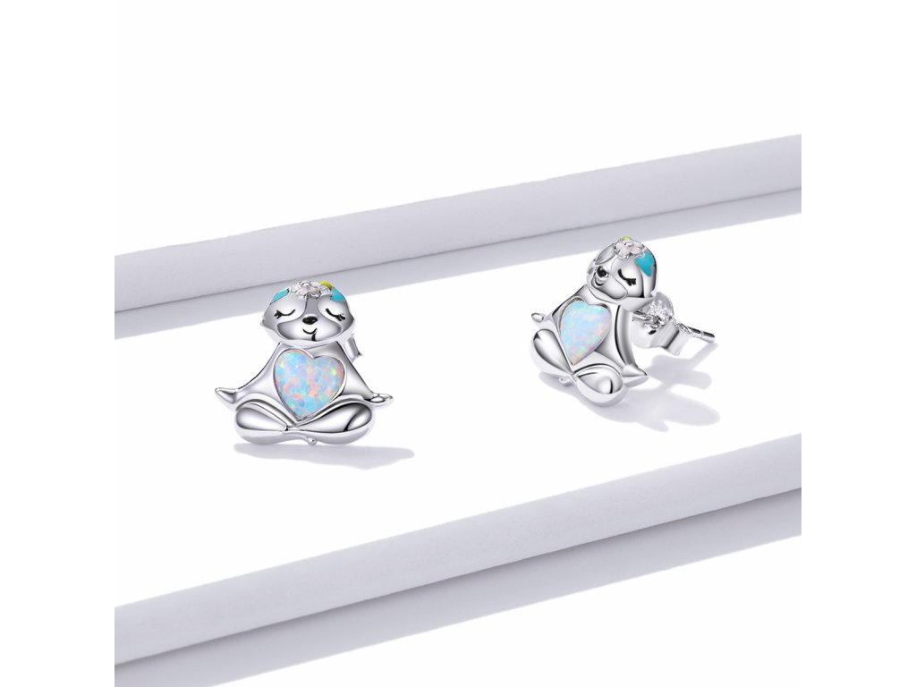 - Stříbrné peckové náušnice v designu roztomilého meditujícího lenochoda zdobeného květy s ručně nanášenou barevnou glazurou. Náušnice jsou také obohaceny krásným barevným opálem ve tvaru srdce. Originální design náušnic, kvalitní zpracování a materiál, ručně dohotovené.