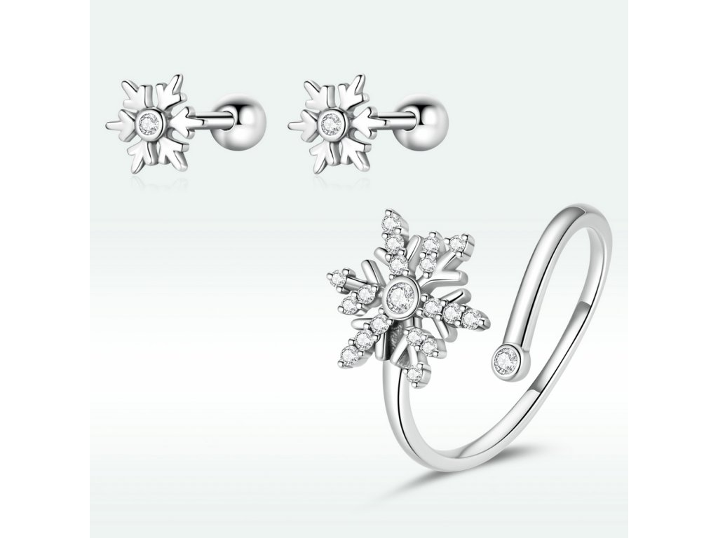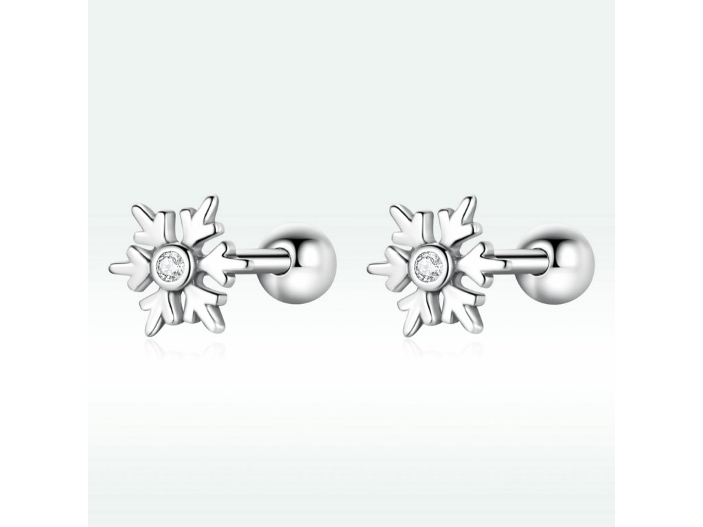 - Stříbrné peckové náušnice v designu sněhových vloček zdobených třpytivými kameny v podobě čirých zirkonů. Originální design náušnic, kvalitní zpracování a materiál, ručně dohotovené.