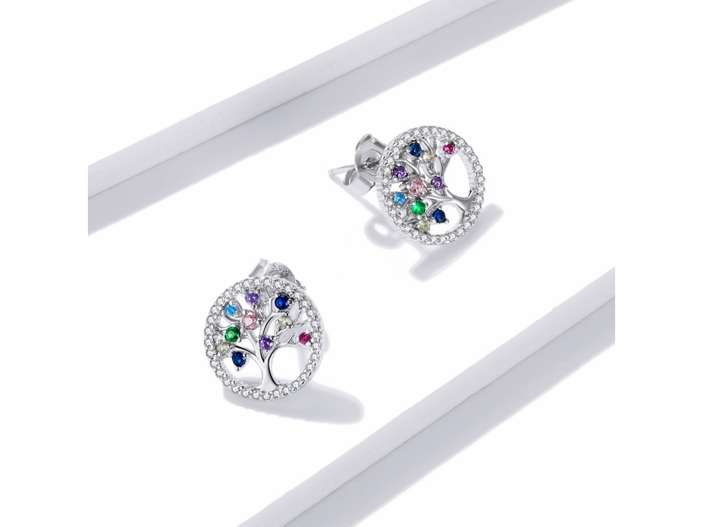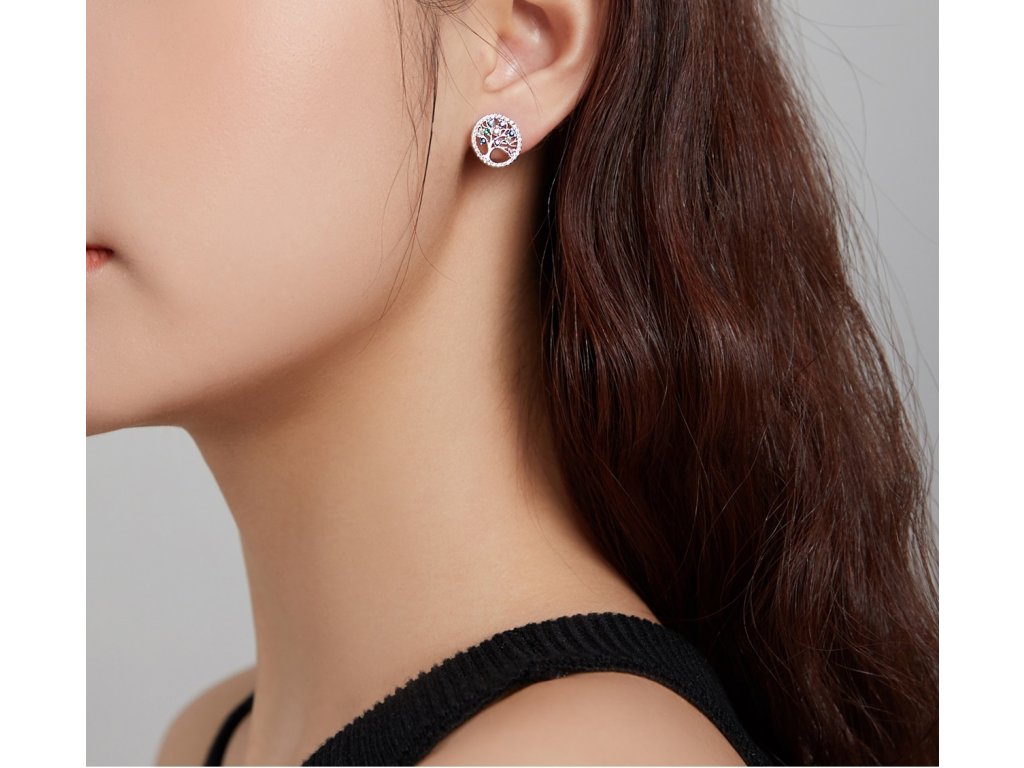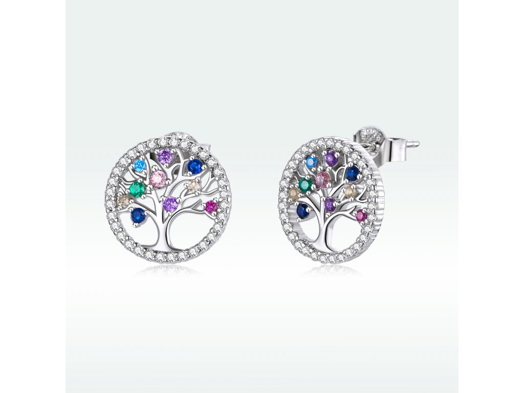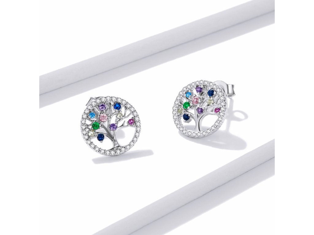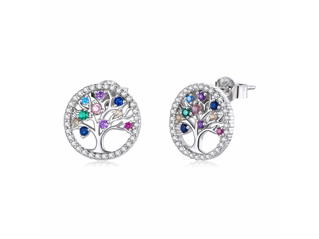 - Stříbrné peckové náušnice v designu Stromu života zdobeného třpytivými čirými a barevnými zirkony. Náušnice s motivem stromu života, symbolizují propojení s rodinou. Připomínají vám, že tu nikdy nejste sami. Originální design náušnic, kvalitní zpracování a materiál, ručně dohotovené.