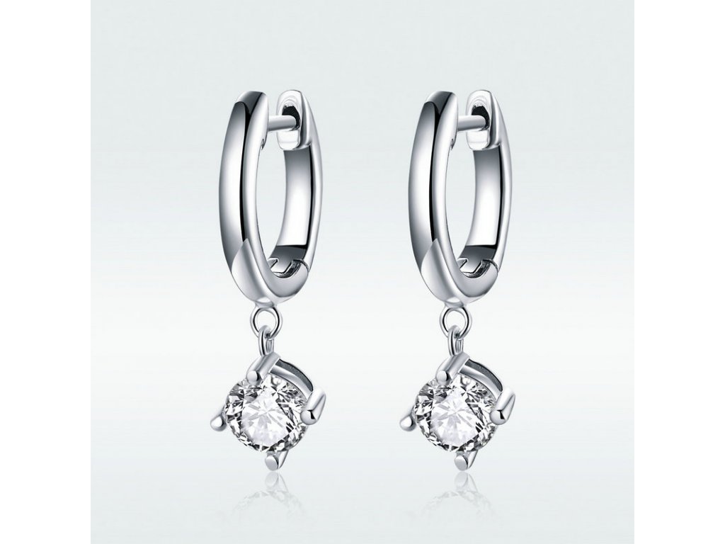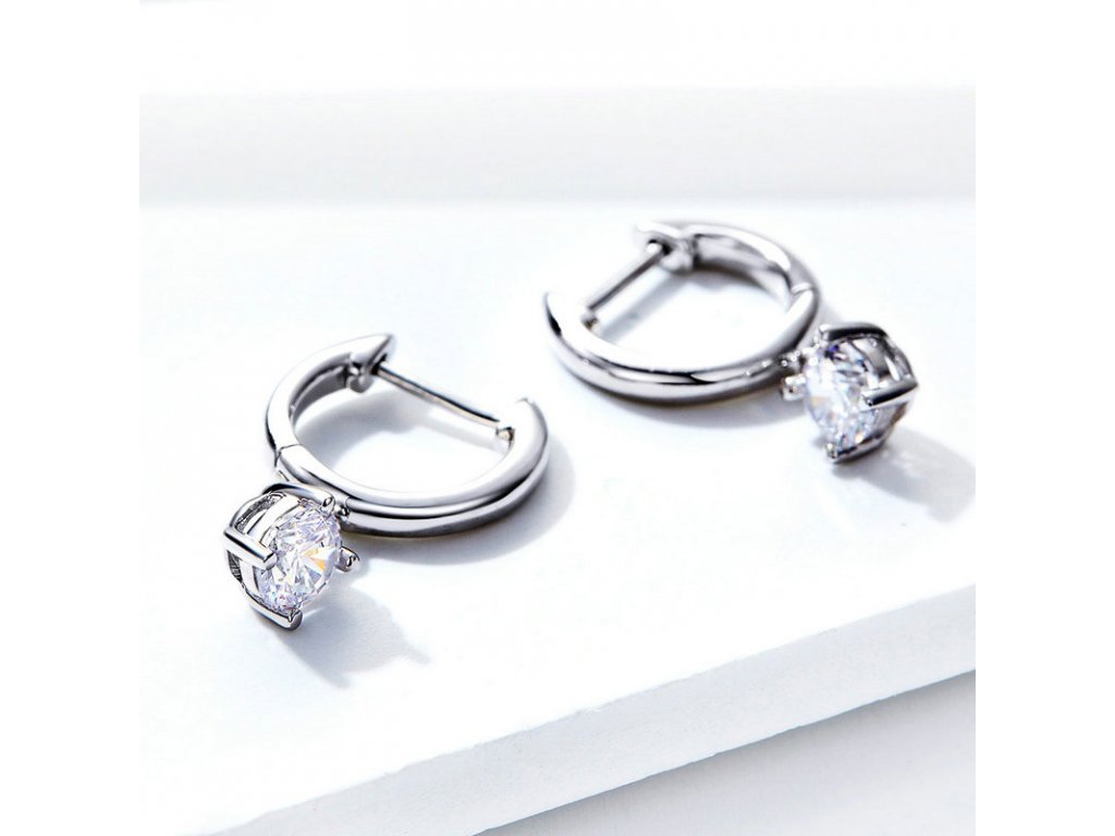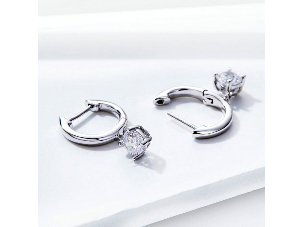 Krásné a elegantní stříbrné náušnice ve tvaru kroužku s nádherně se třpytícím broušeným zirkonem. Originální design náušnic, kvalitní zpracování a materiál, ručně dohotovené.