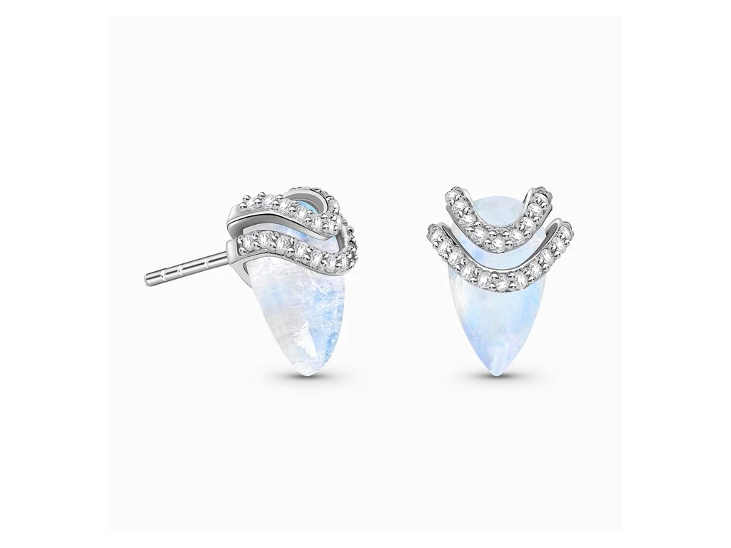 - Luxusní stříbrné rhodiované náušnice Bohyně obohacené měsíčními duhovými drahokamy Moonstony a čirými třpytivými drahokamy topazy. Originální design náušnic, kvalitní zpracování a materiál, ručně dohotovené.