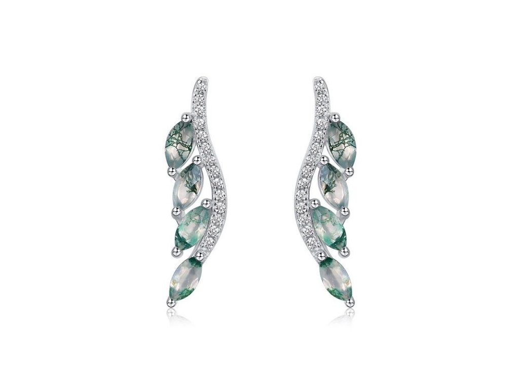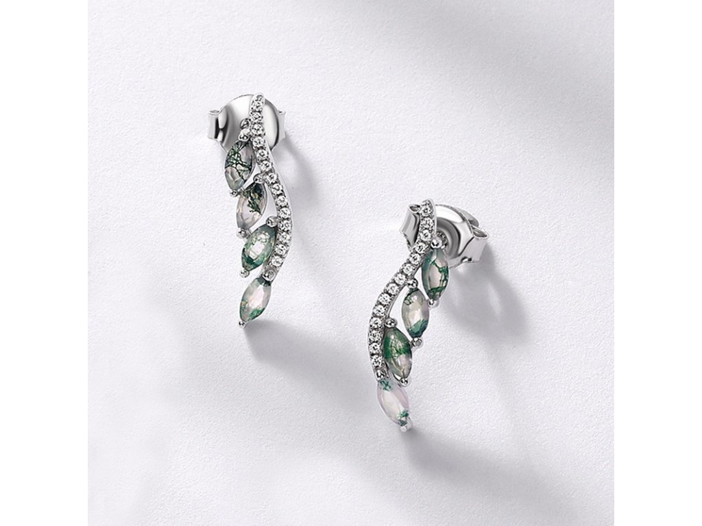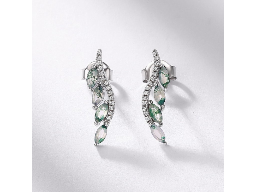Elenys stříbrné rhodiované náušnice Mechový achát